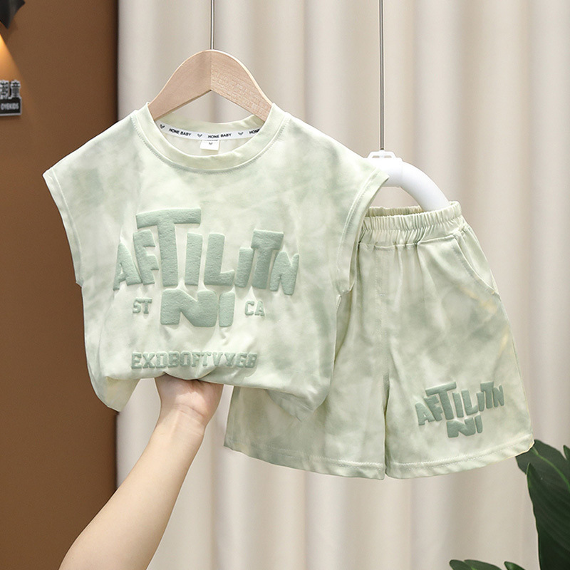 남자들의 여름 2025 새로운 스타일 어린이 여름 얇은 소년 옷 여름 아기 민소매 조끼 세트