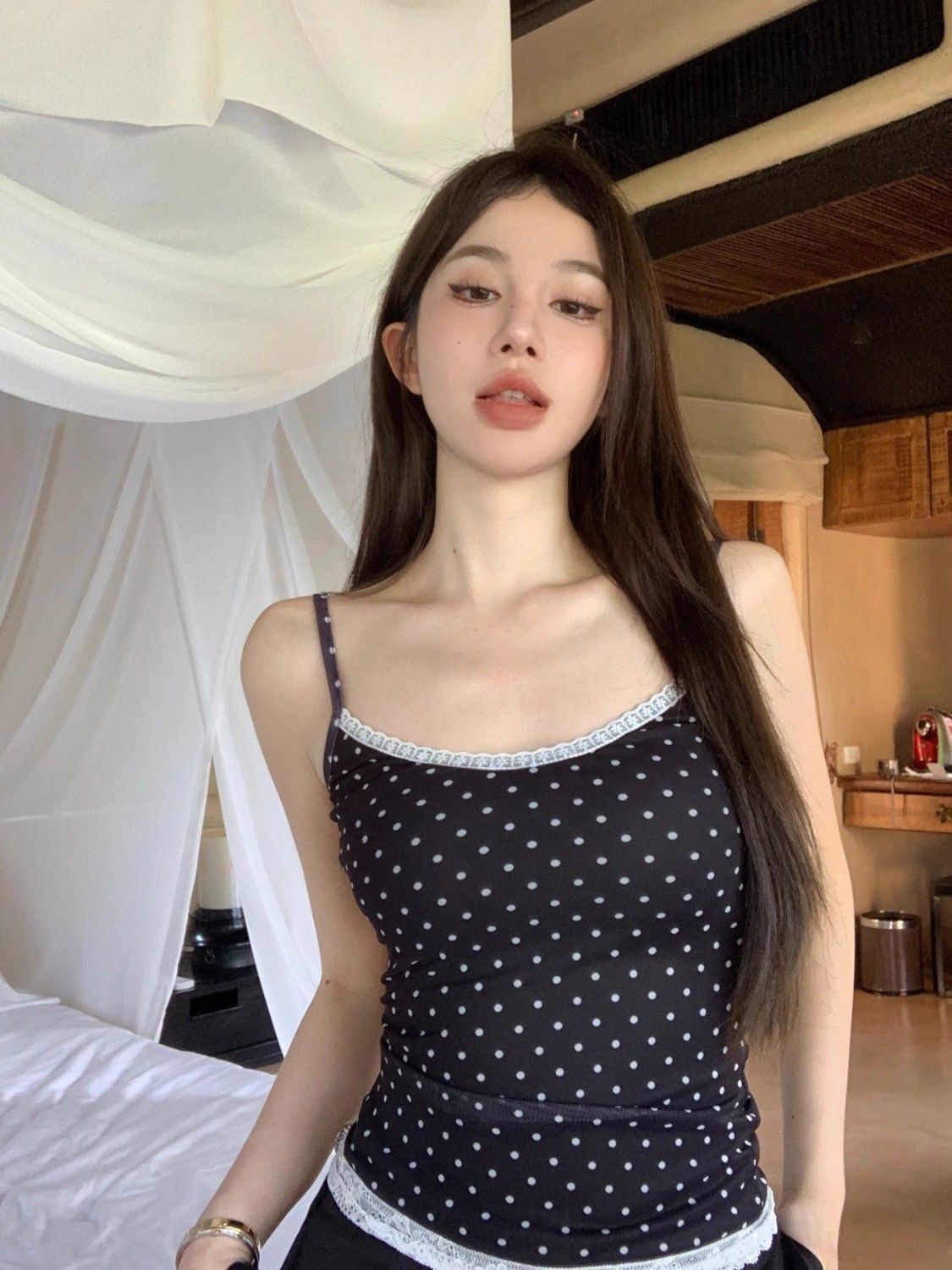 Jane Mann Spice Girl's Inner Wear Pure Wish Exterior Girls 슬링 스키니 슬림 핏 레이스 스티칭 웨이브 포인트 학생 조끼 여름스토어 가기