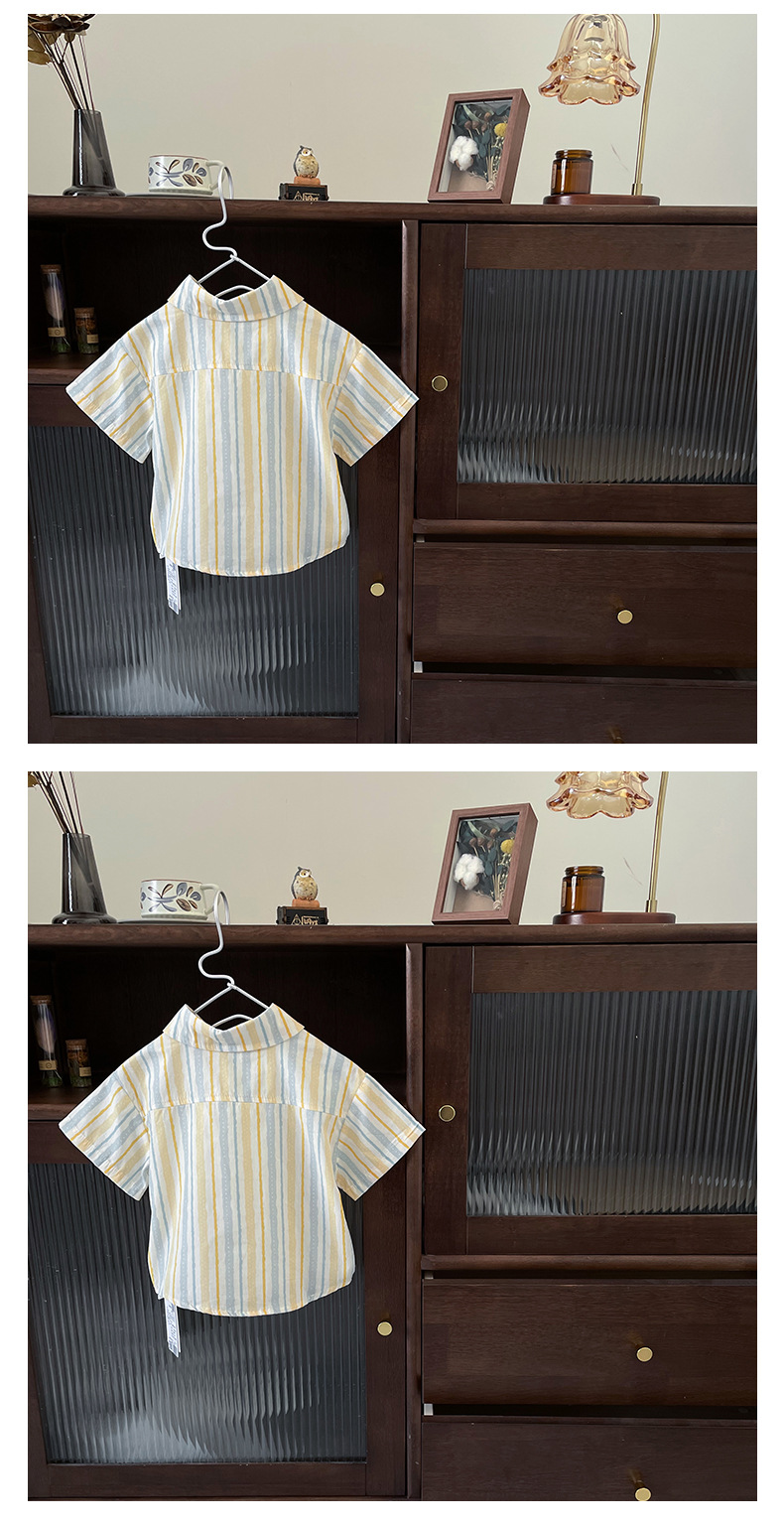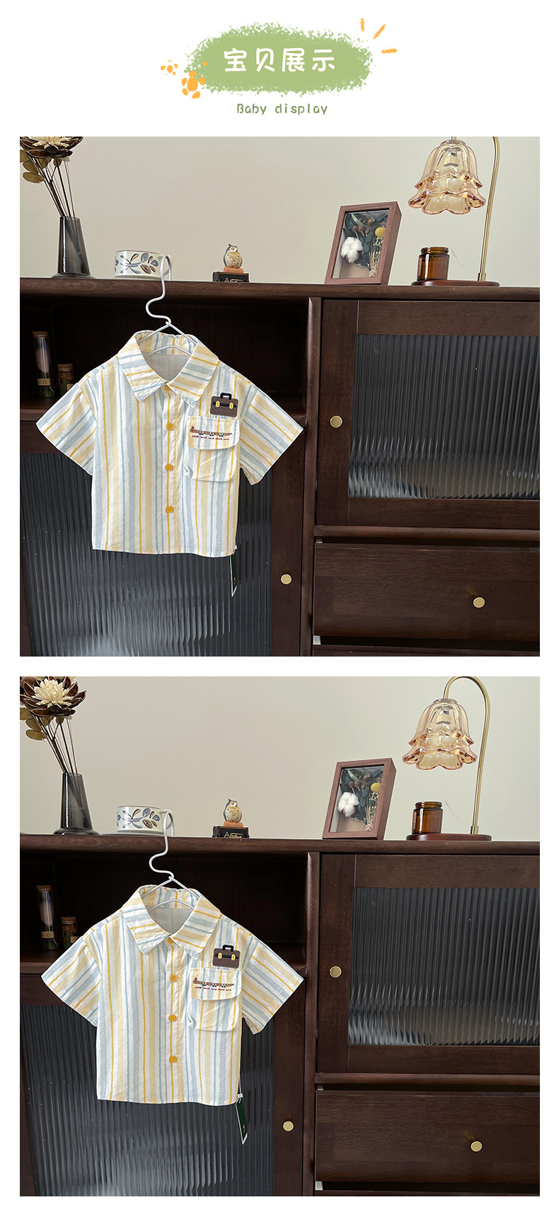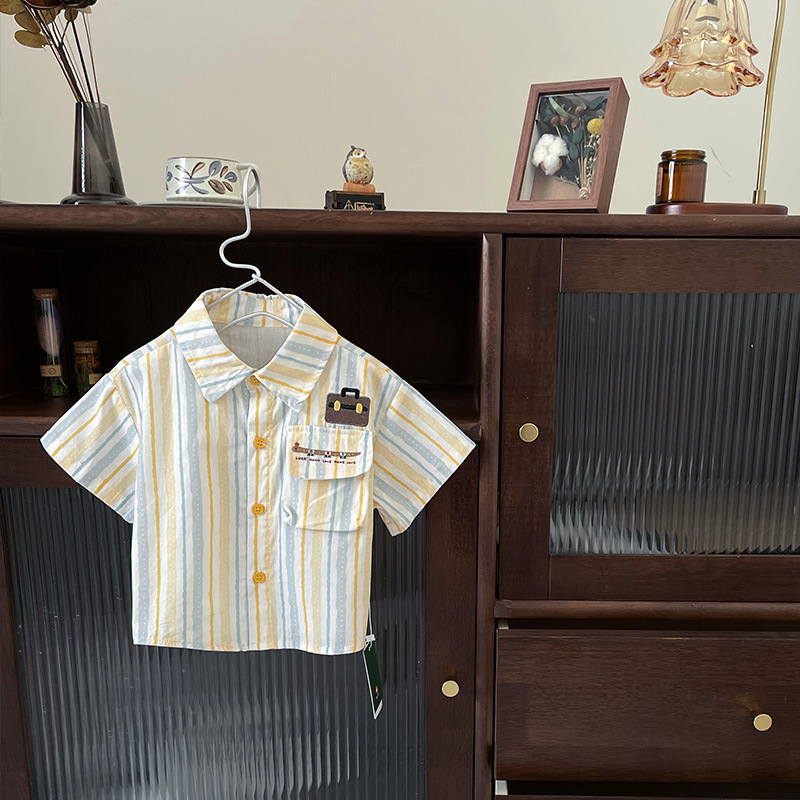 [재고 있음] QM252079 소년 셔츠 2025 여름 신작 한국어 버전 줄무늬 만화 자수 셔츠스토어 가기