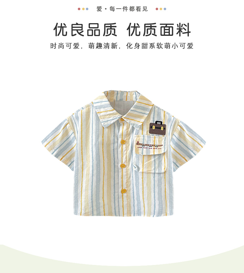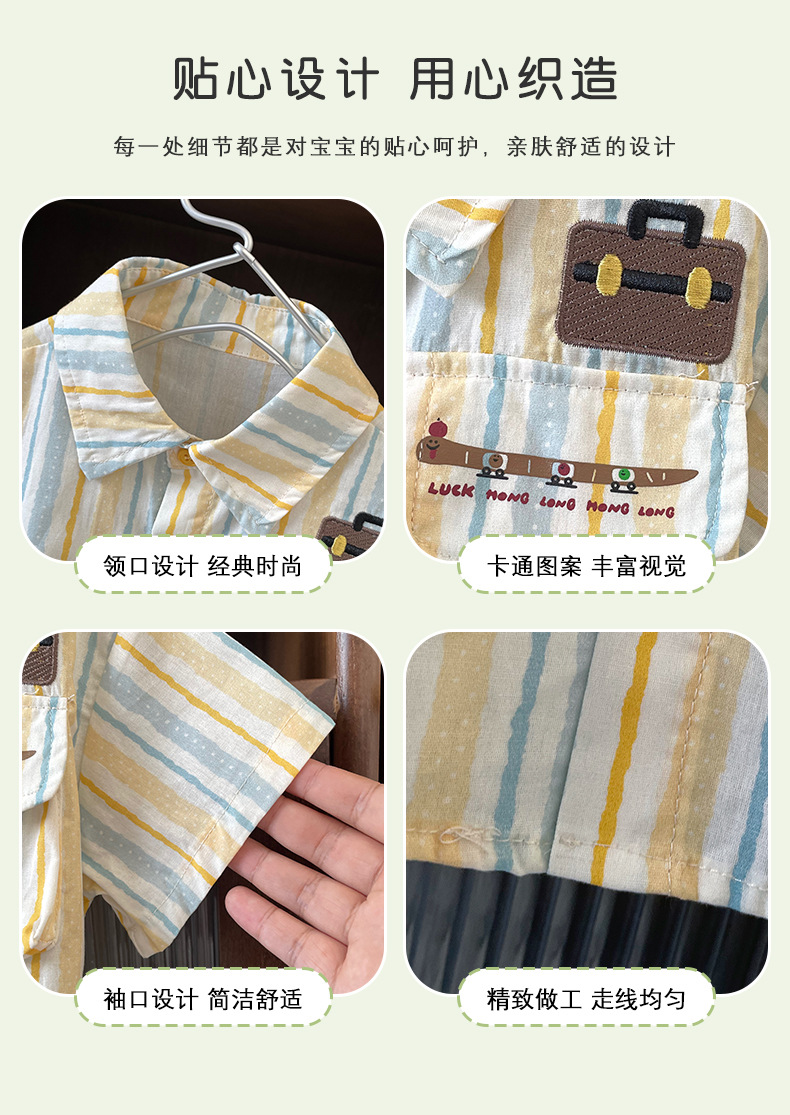 [재고 있음] QM252079 소년 셔츠 2025 여름 신작 한국어 버전 줄무늬 만화 자수 셔츠