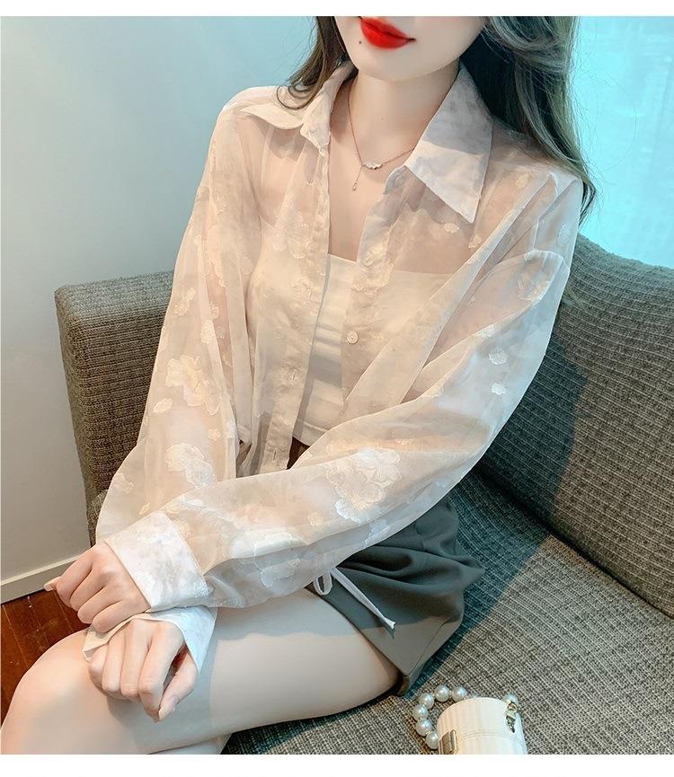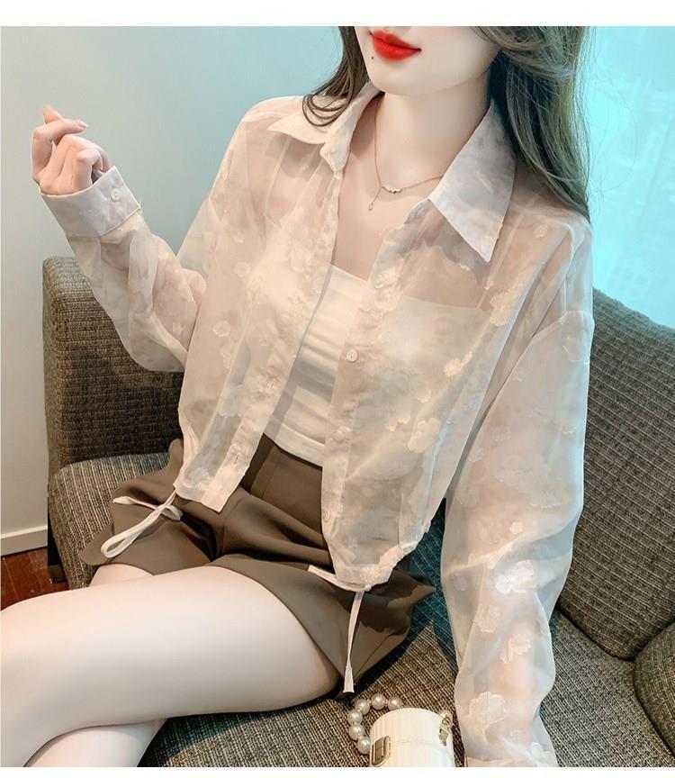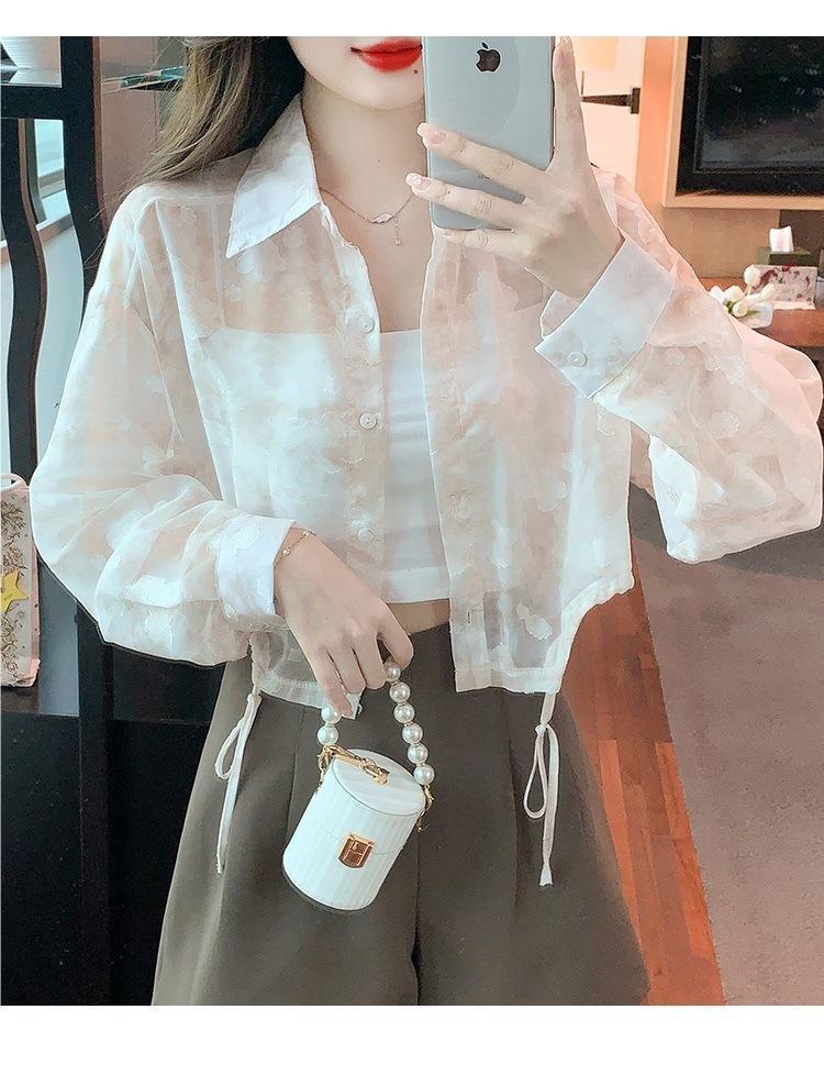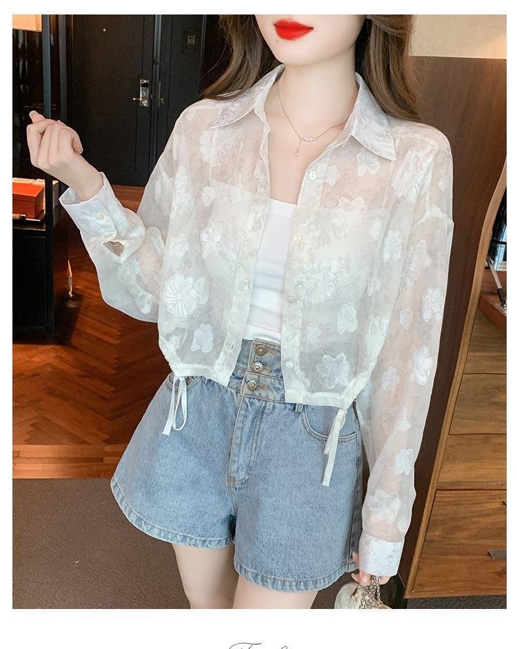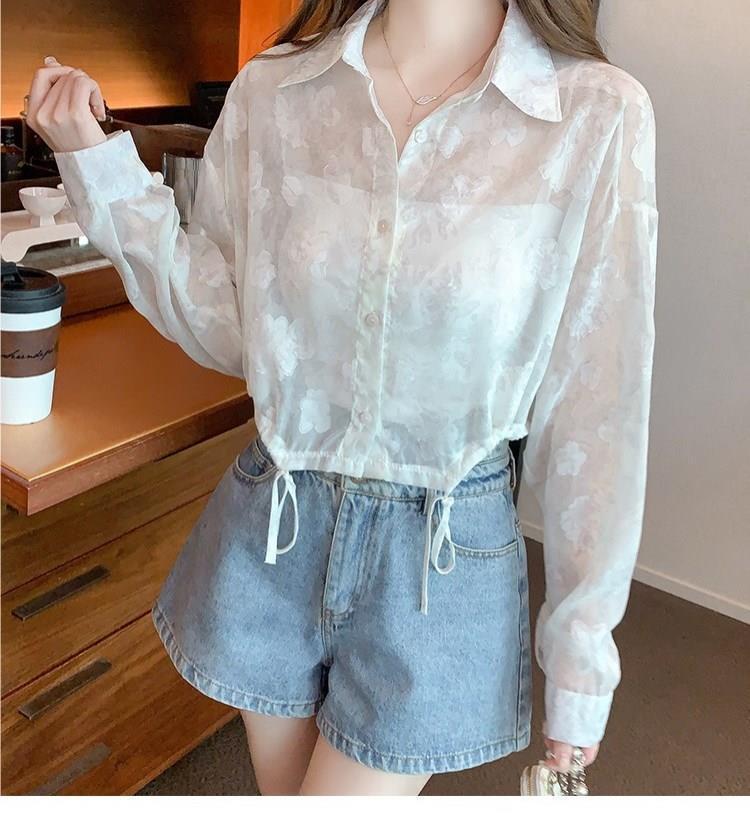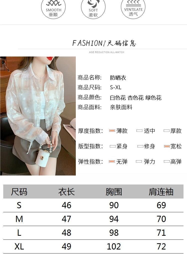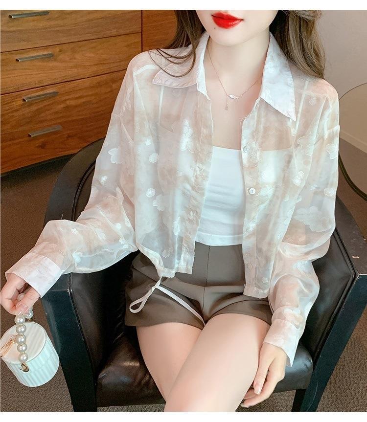 작고 신선하고 달콤한 꽃무늬 쉬폰 셔츠 자외선 차단 의류 여성 여름 긴팔 얇은 카디건 탑 짧은 코트스토어 가기