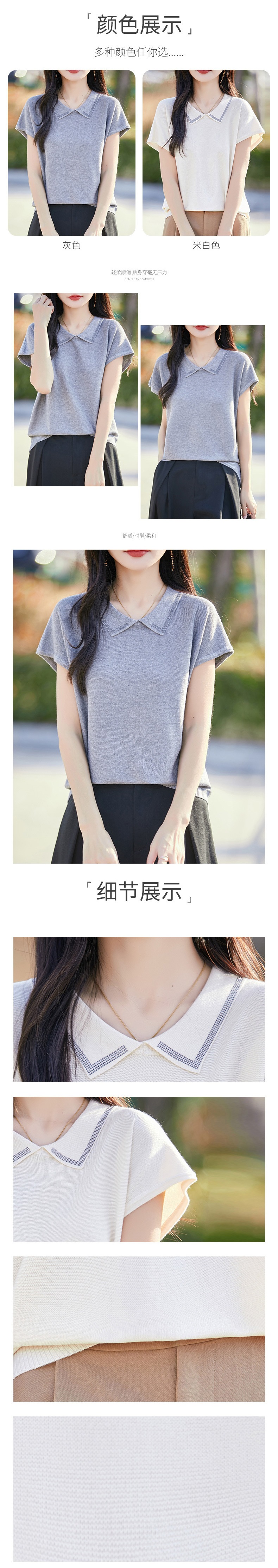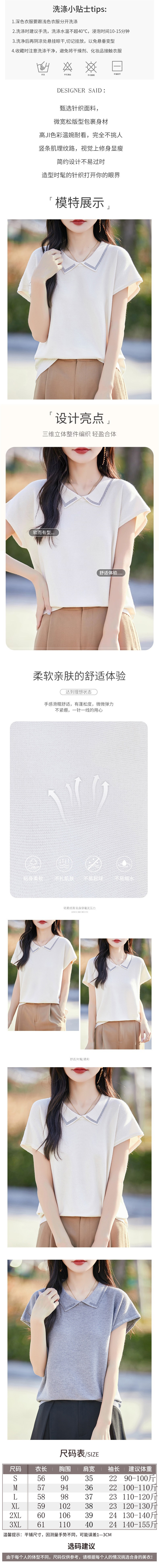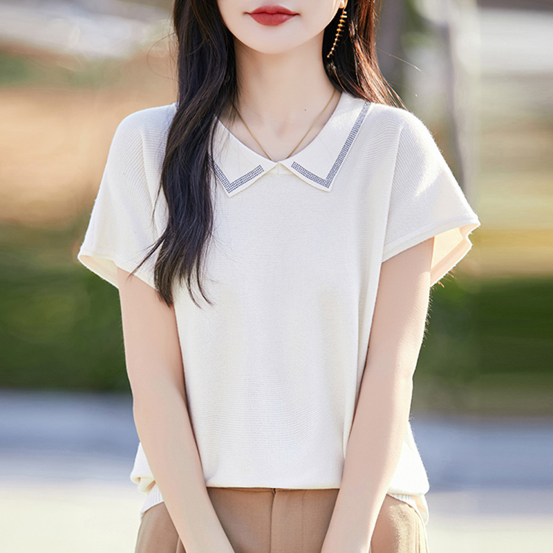 여성을위한 인형 칼라 반팔 울 니트 탑 여름 2025 새로운 젊은 바닥 셔츠 솔리드 컬러 티셔츠 얇은스토어 가기
