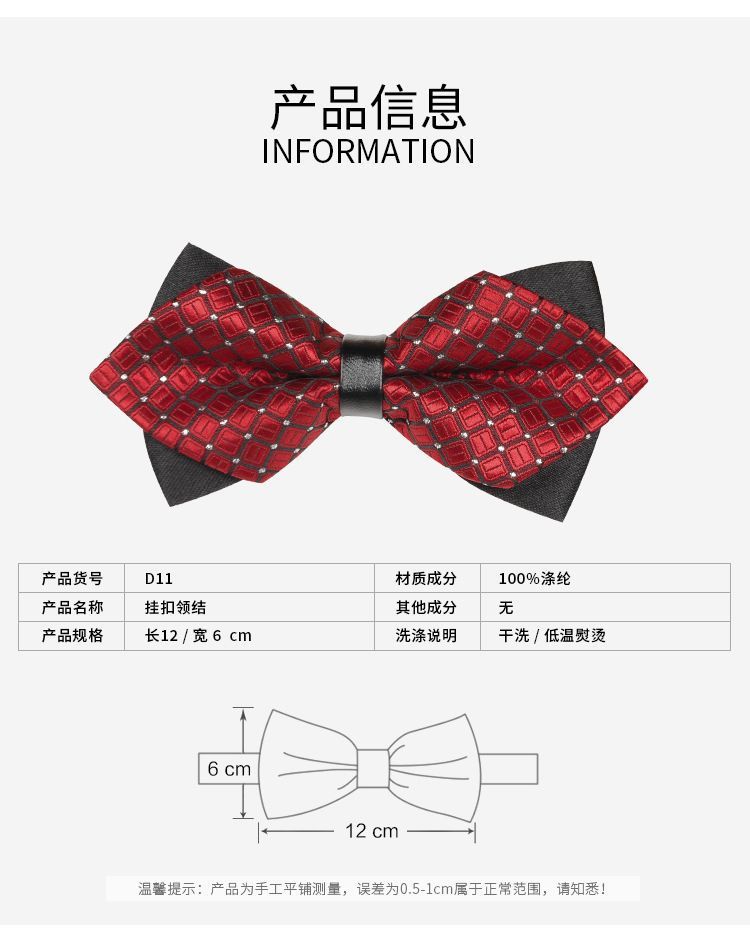 뾰족한 나비 넥타이 남성 정장 한국식 뾰족한 더블 레이어 신랑 결혼식 부르고뉴 나비 넥타이 여성 블랙