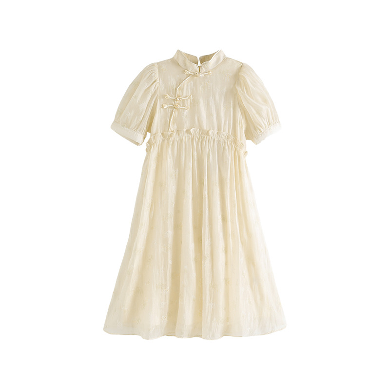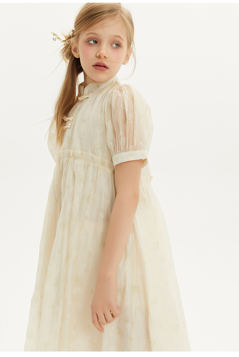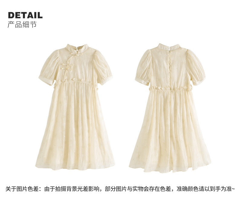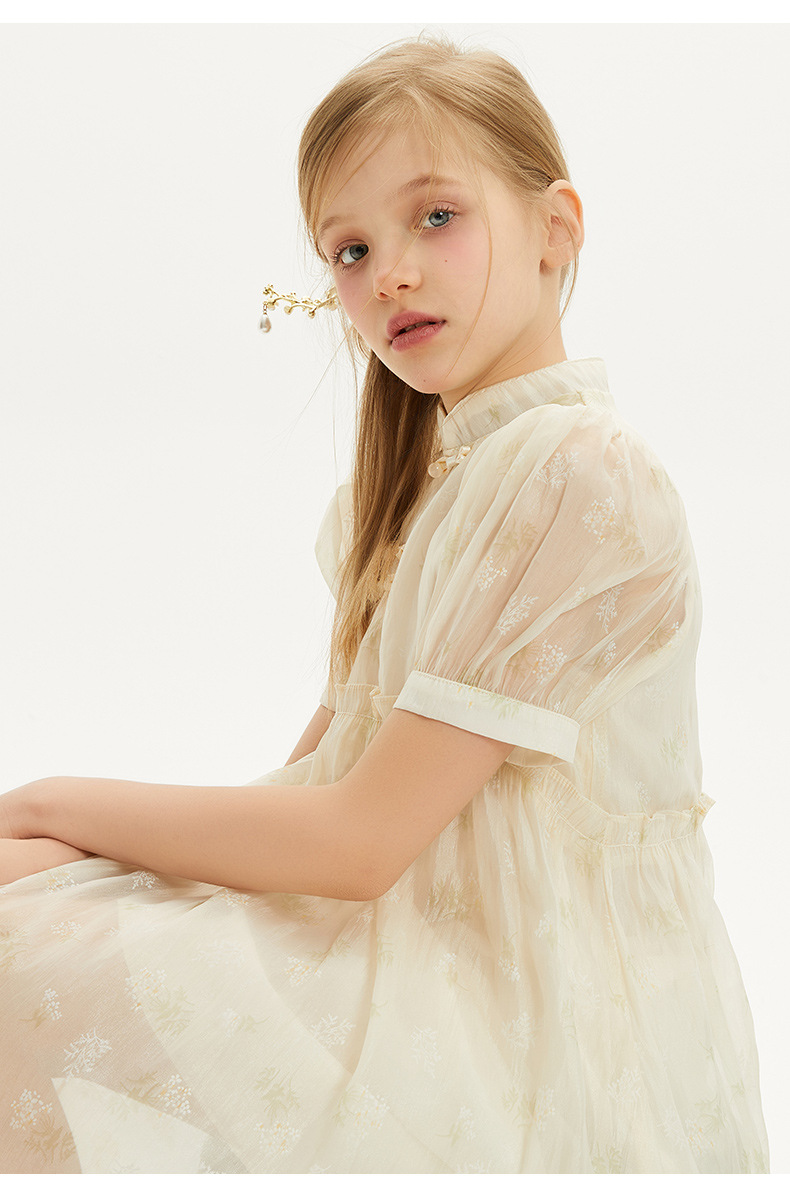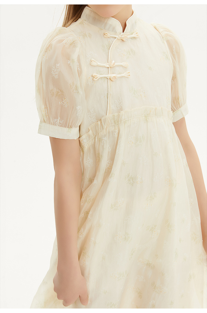 중국 스타일 소녀의 개선된 Hanfu 드레스, 큰 어린이를 위한 꽃무늬 쉬폰 여름 스타일 프린트 버튼 새로운 중국 스타일 공주 드레스