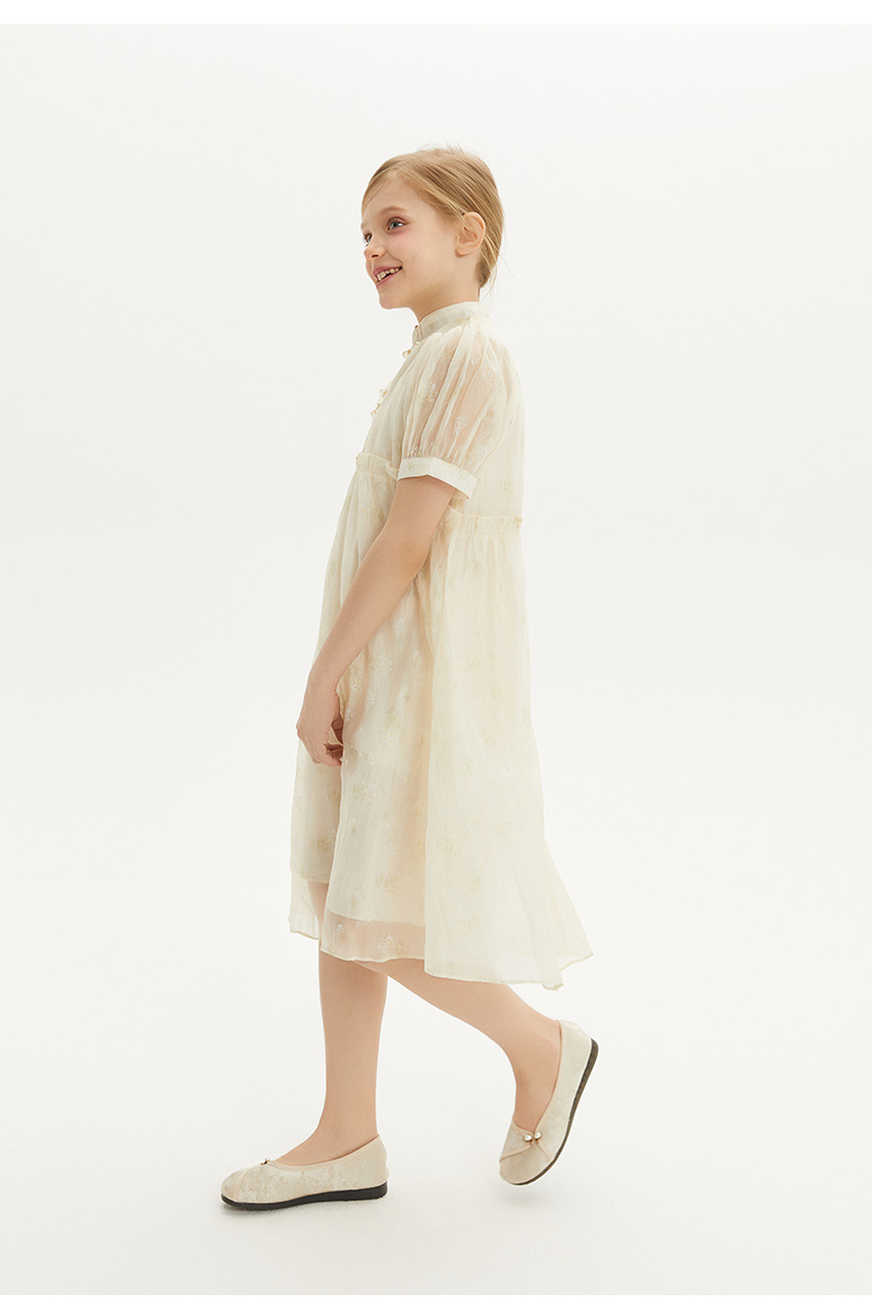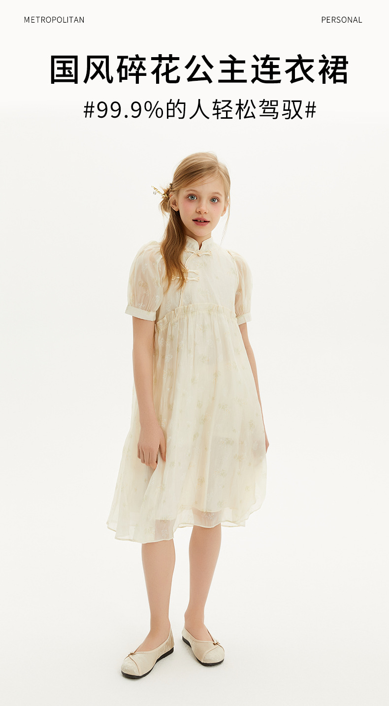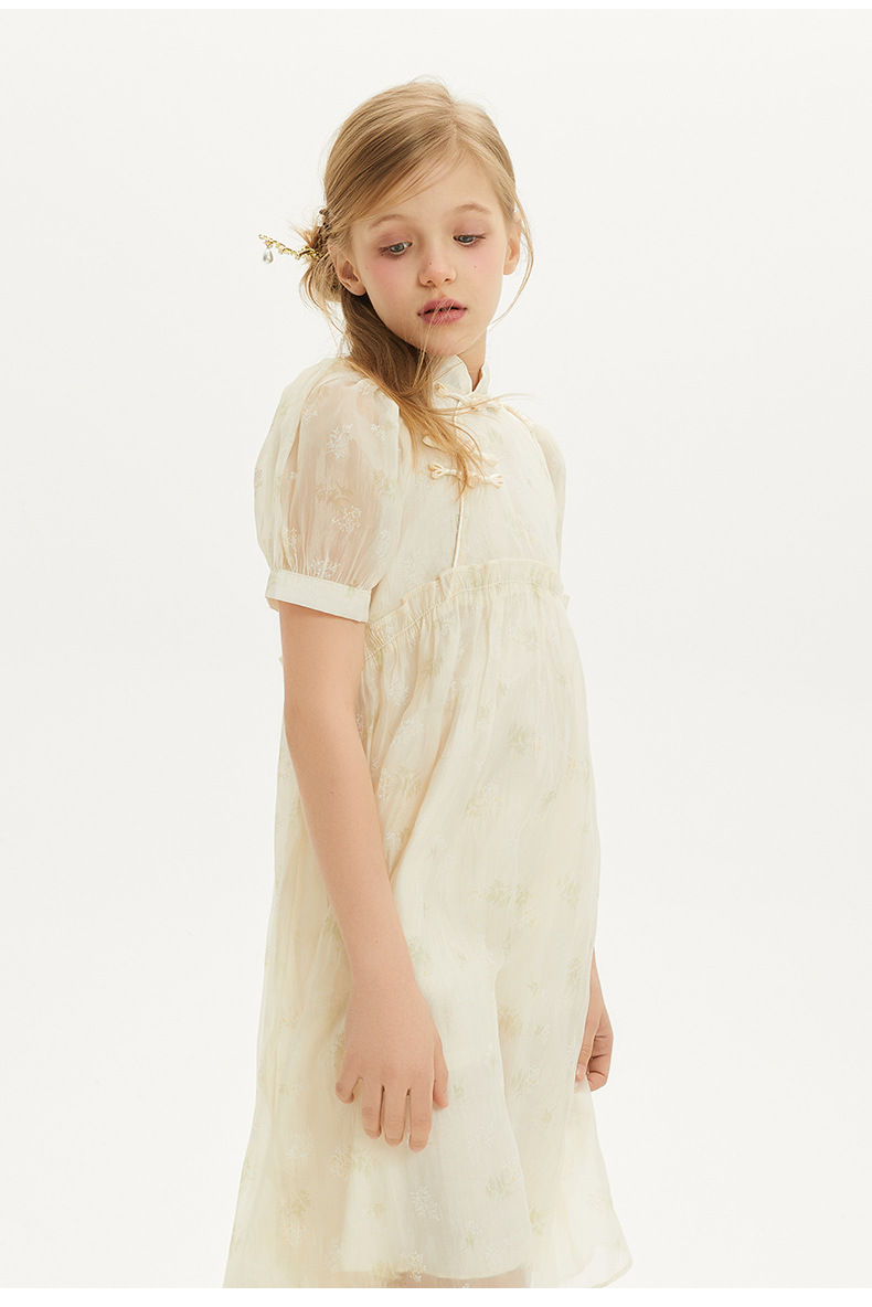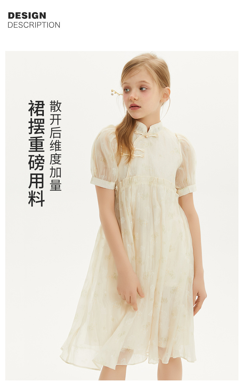 중국 스타일 소녀의 개선된 Hanfu 드레스, 큰 어린이를 위한 꽃무늬 쉬폰 여름 스타일 프린트 버튼 새로운 중국 스타일 공주 드레스