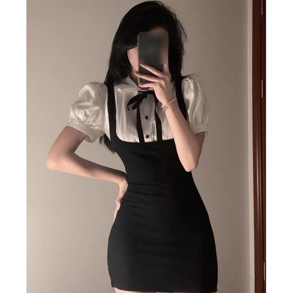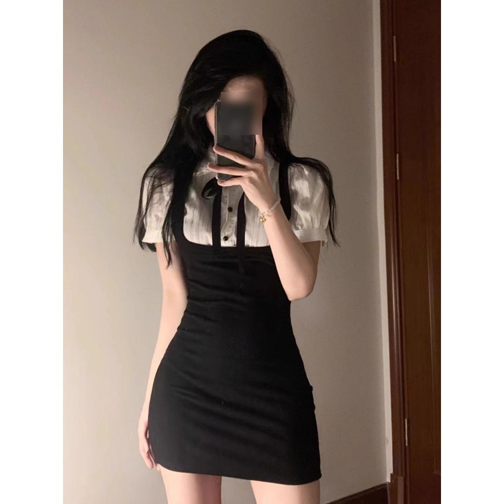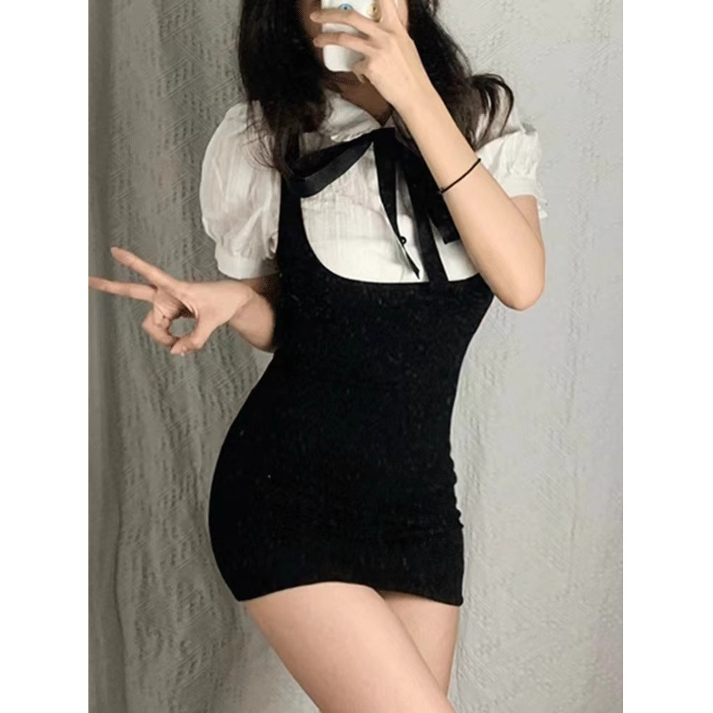 컬리지 스타일 페이크 투피스 디자인 폴로 칼라 드레스, 패셔너블한 여름 핫걸 허리 슬리밍 힙 커버 짧은 스커트 트렌디스토어 가기