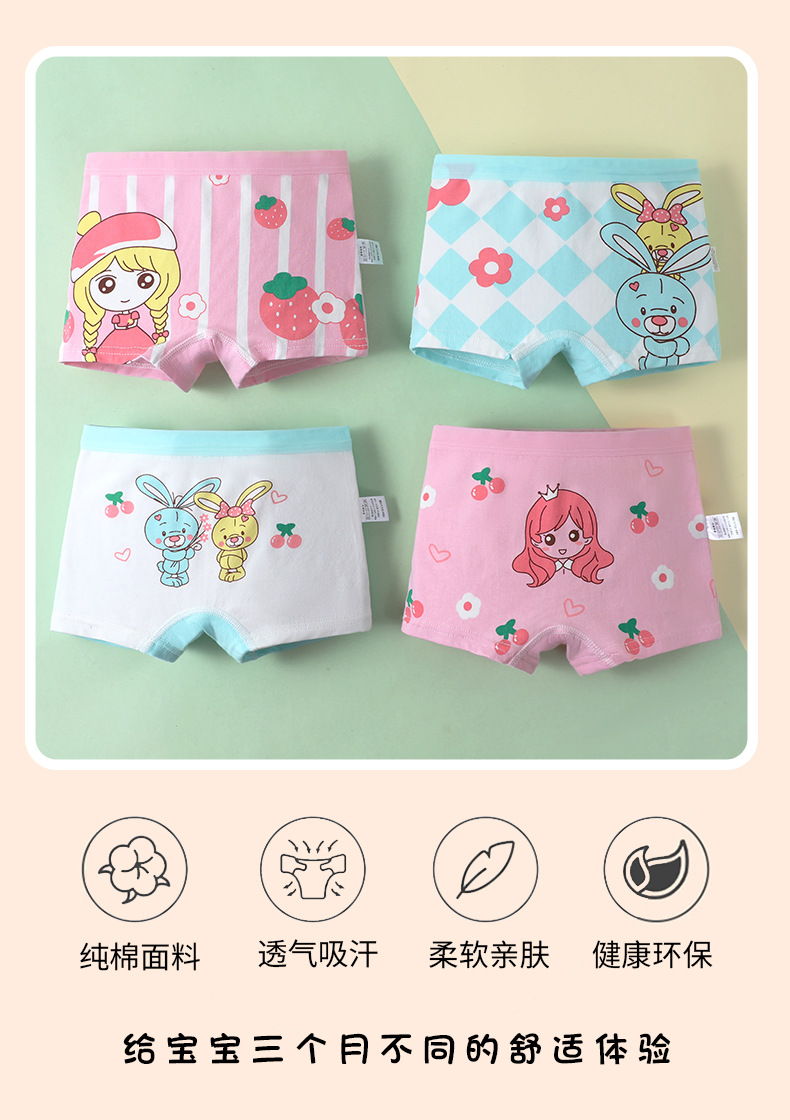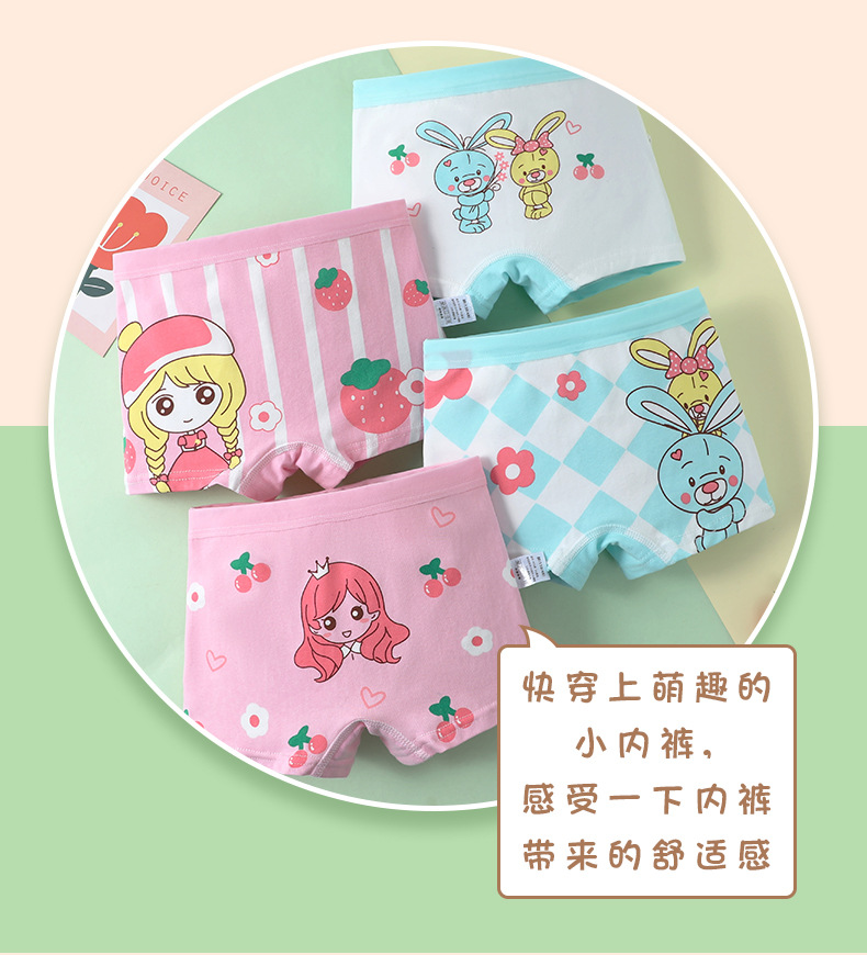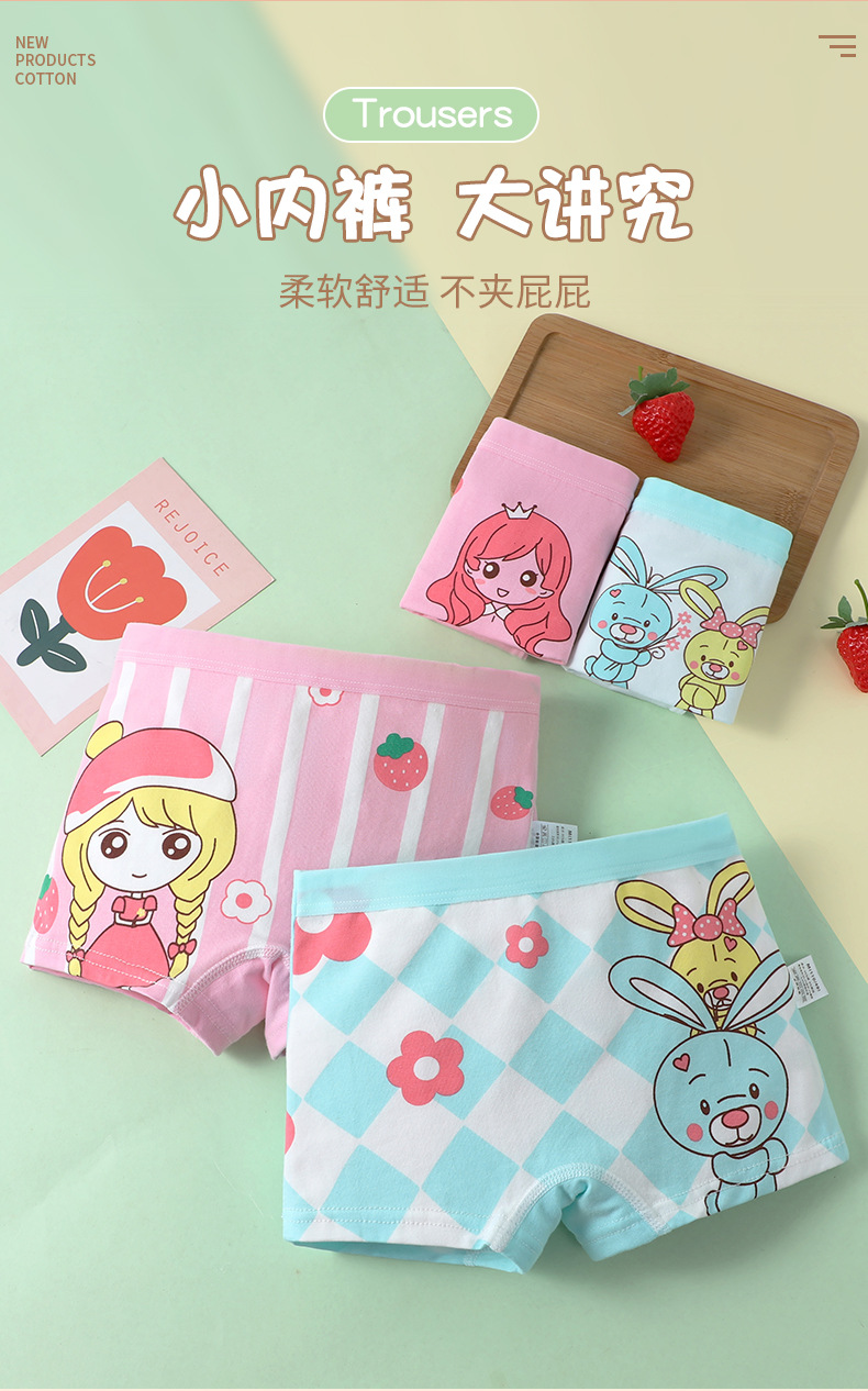 여아용 클래스 A 속옷, 항균 아동용 사각팬티, 만화반바지, 순면, 중대형 아동용 귀여운 학생 사각팬티스토어 가기