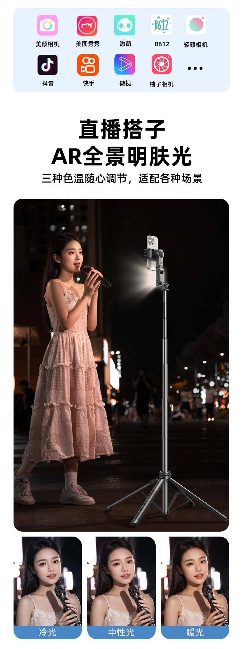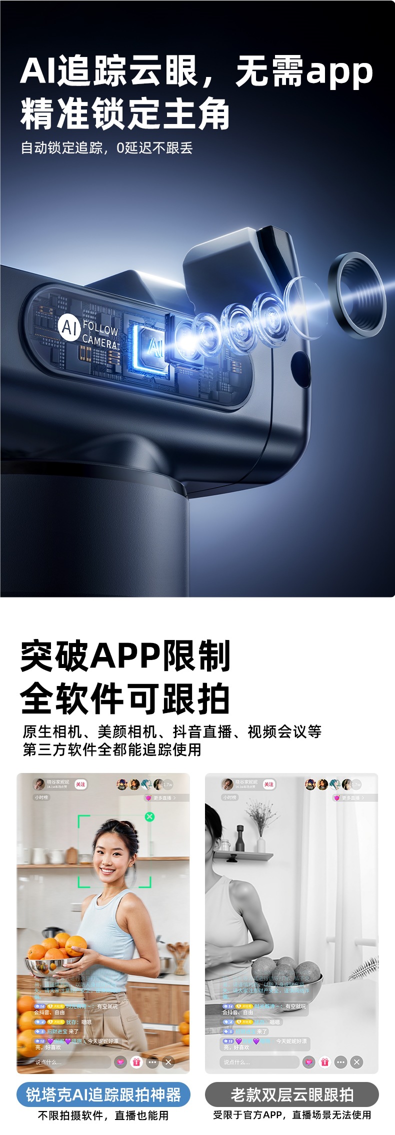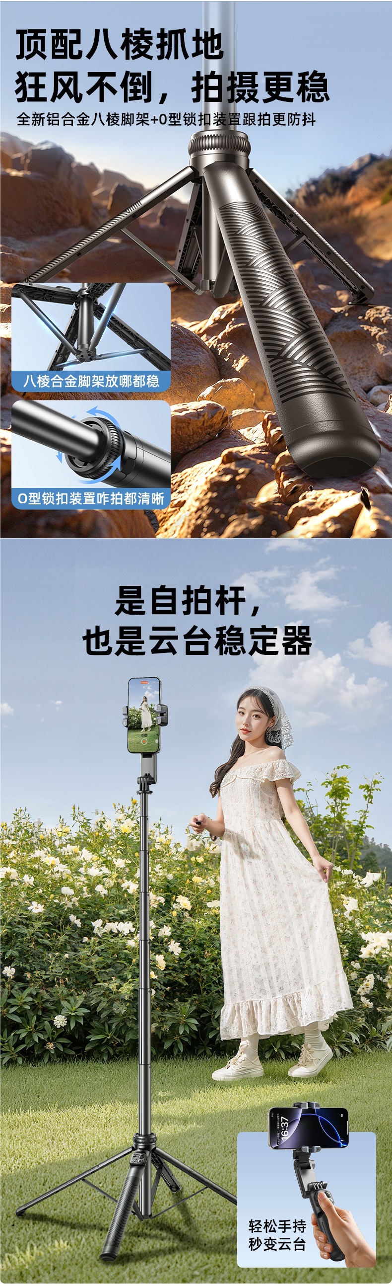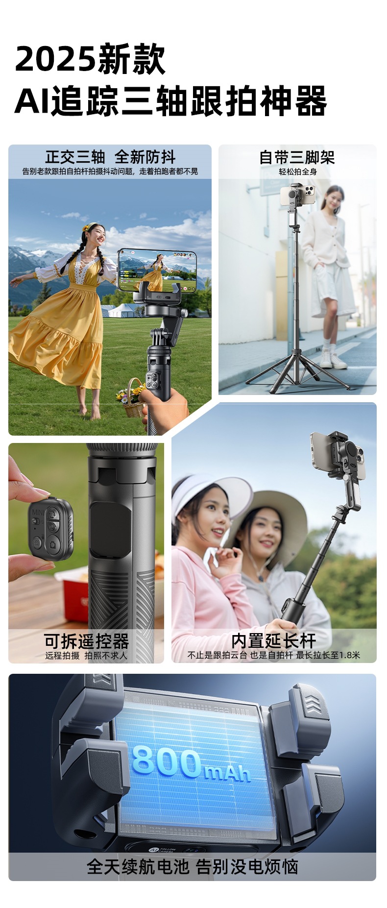 • [최고의 뷰티 모델] 업그레이드 1.8m★AI 클라우드 추적★촬영 지연 0★직교 3축 손떨림 방지★원격 제어