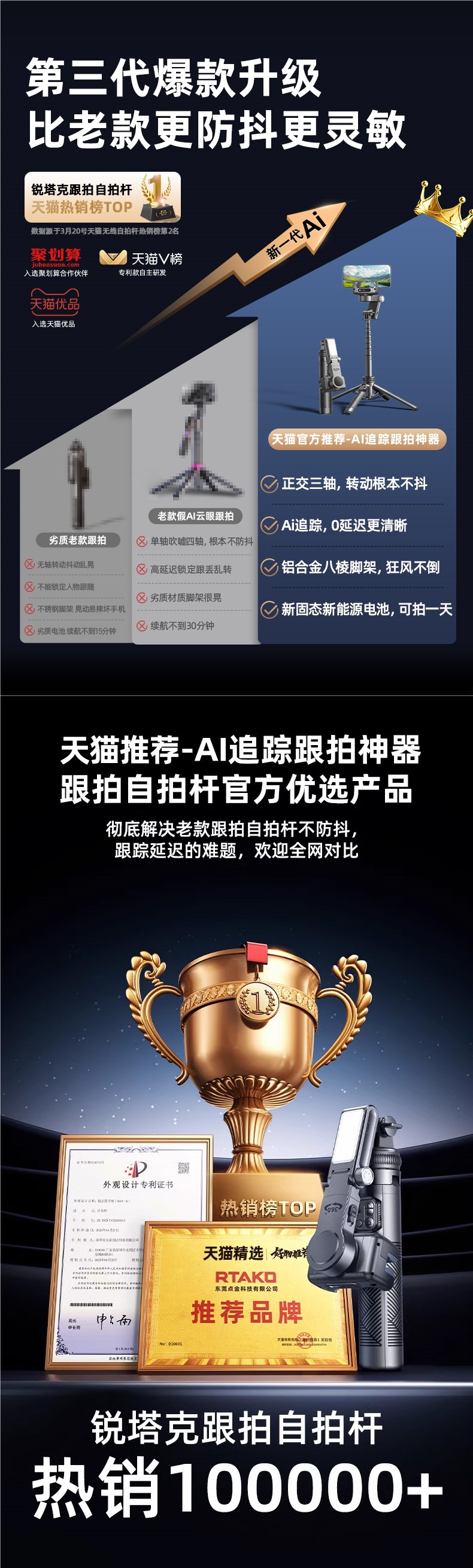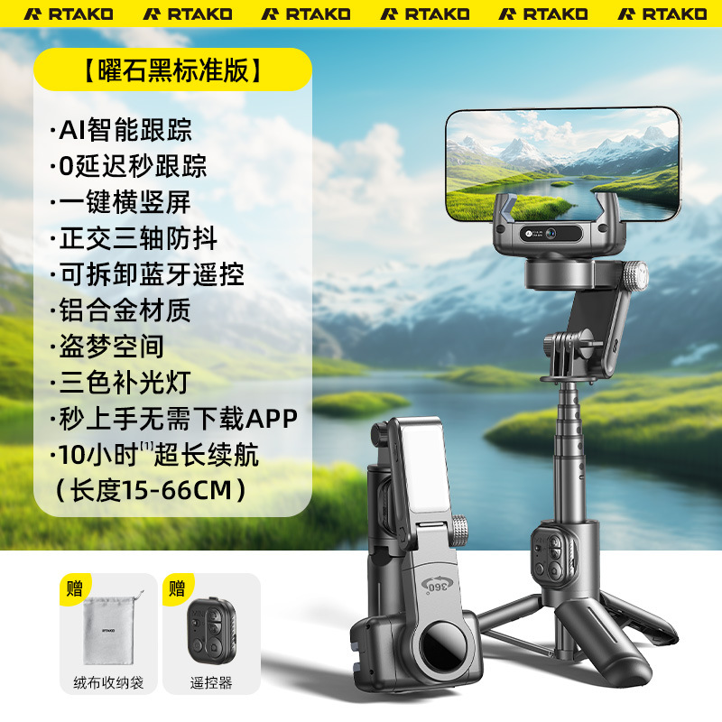 RTAKO 지능형 AI 손떨림 방지 짐벌 2025 새로운 휴대폰 셀카봉 완전 자동 360도 회전 바닥스토어 가기