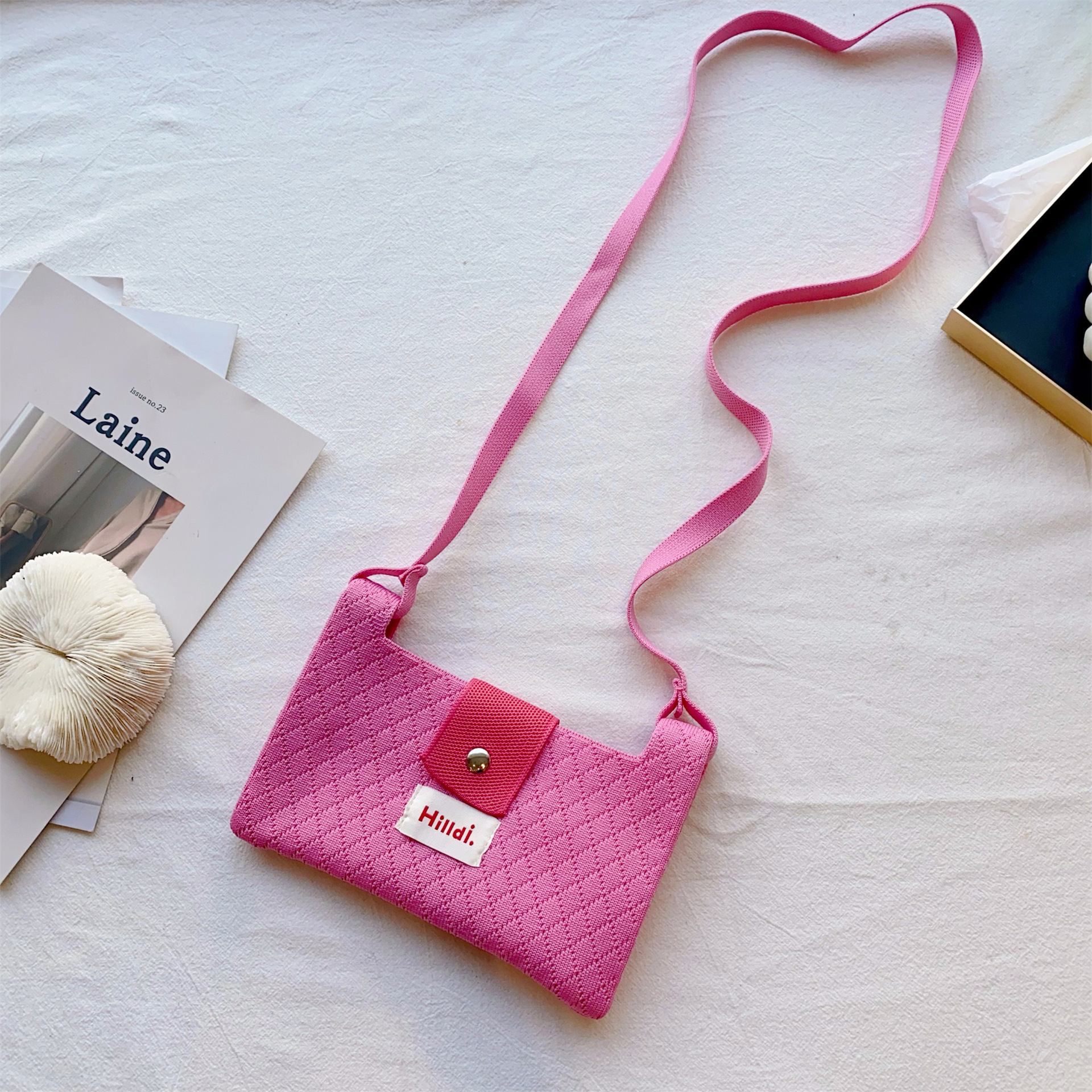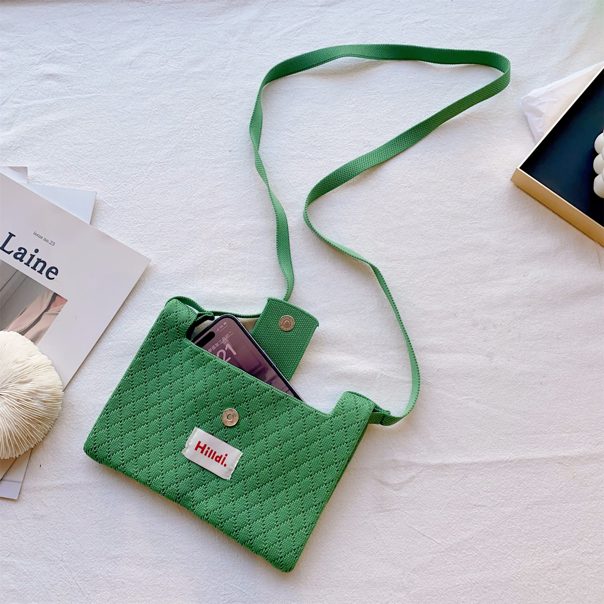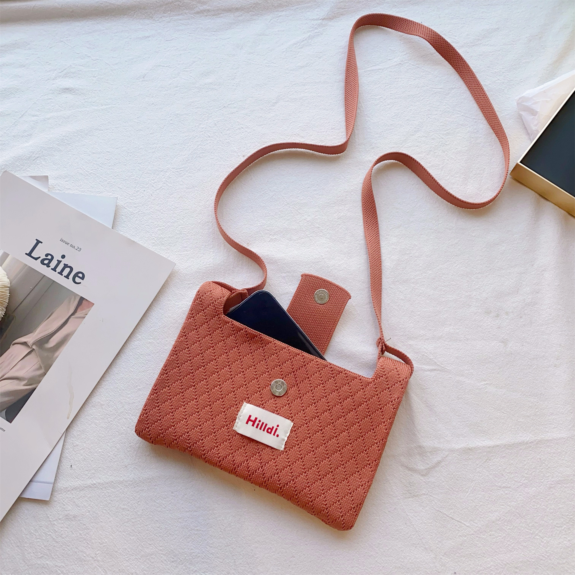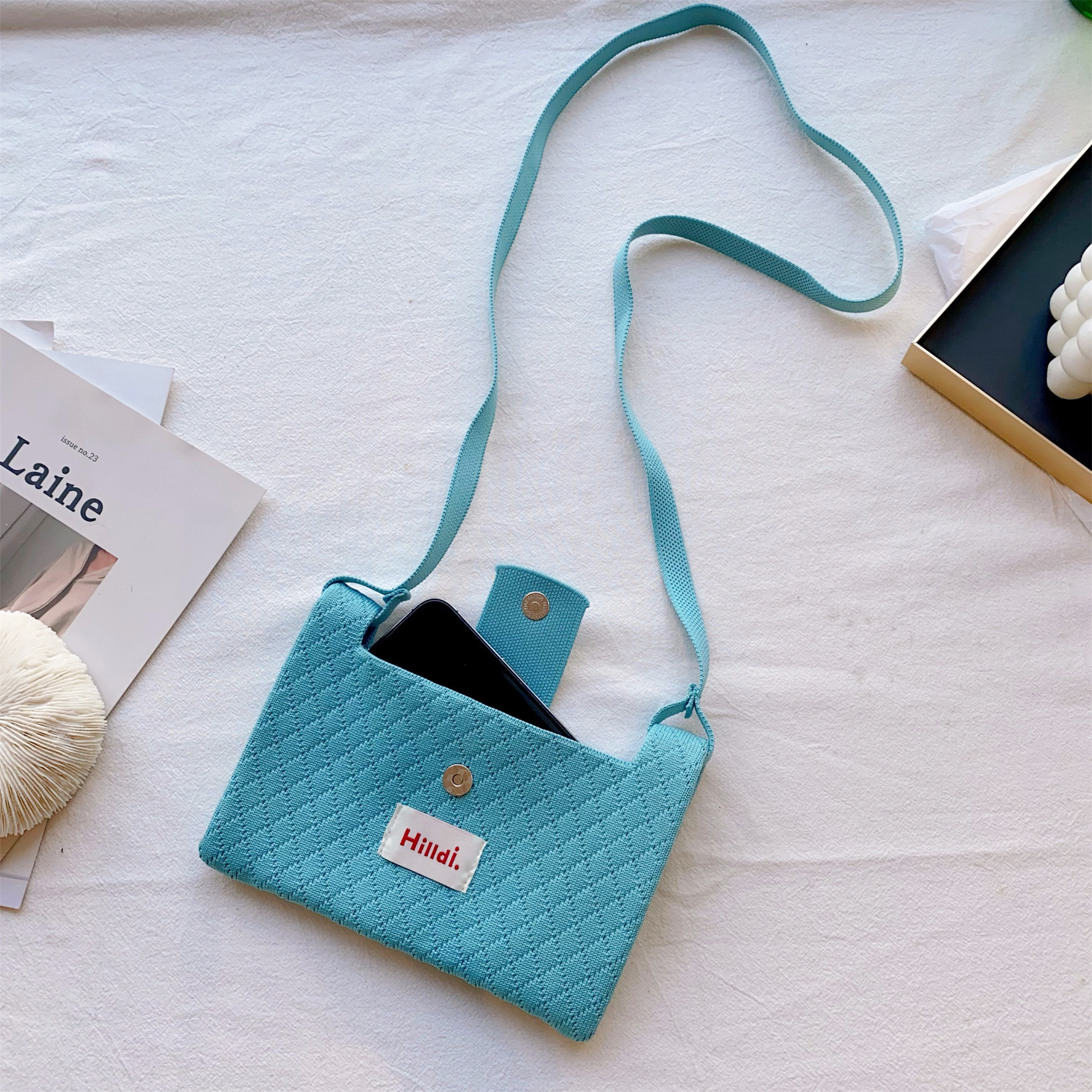 일본과 한국 스타일의 작은 신선한 미니 크로스 바디 백 장난스러운 귀여운 마카롱 캔디 컬러 니트 휴대 전화 동전 지갑 가방스토어 가기