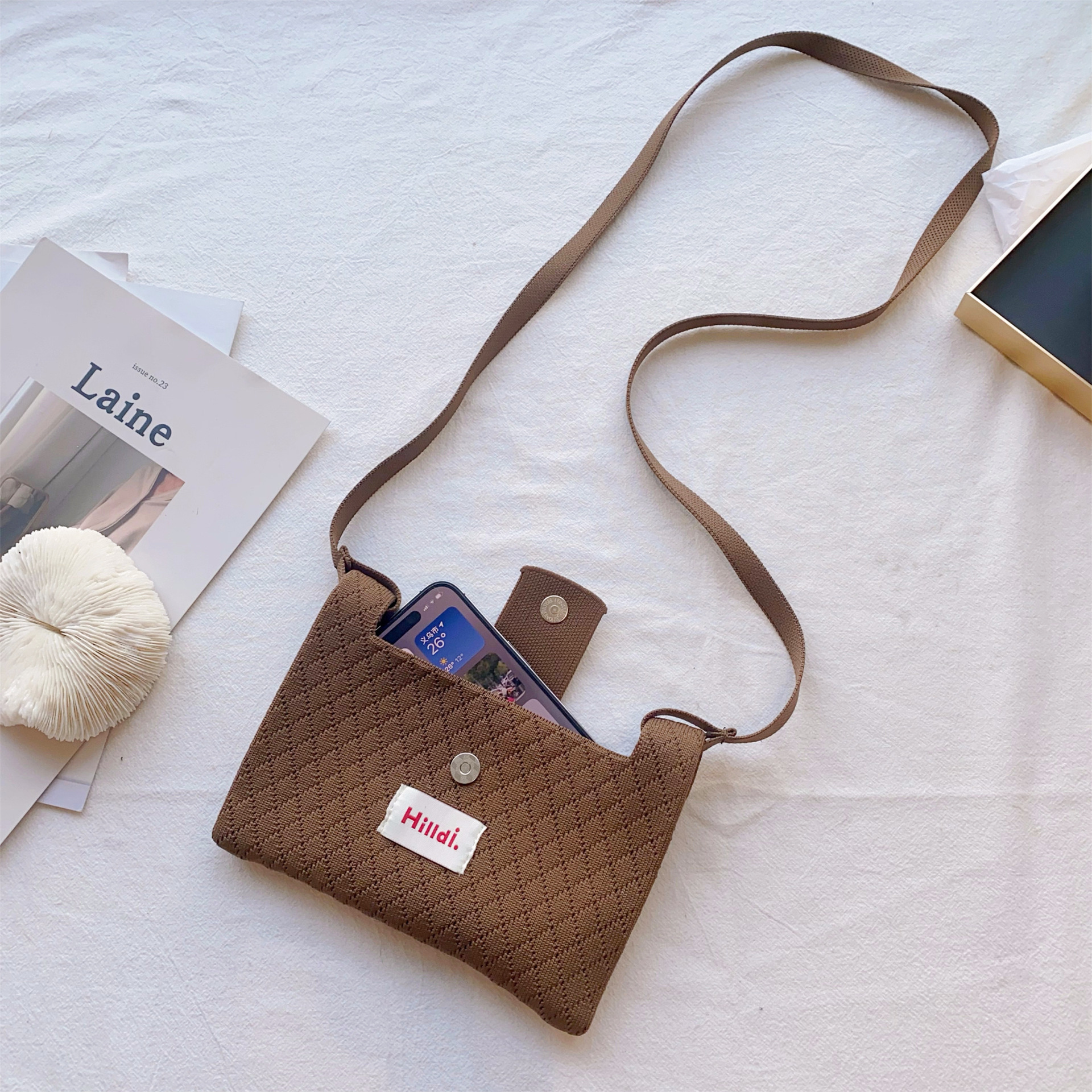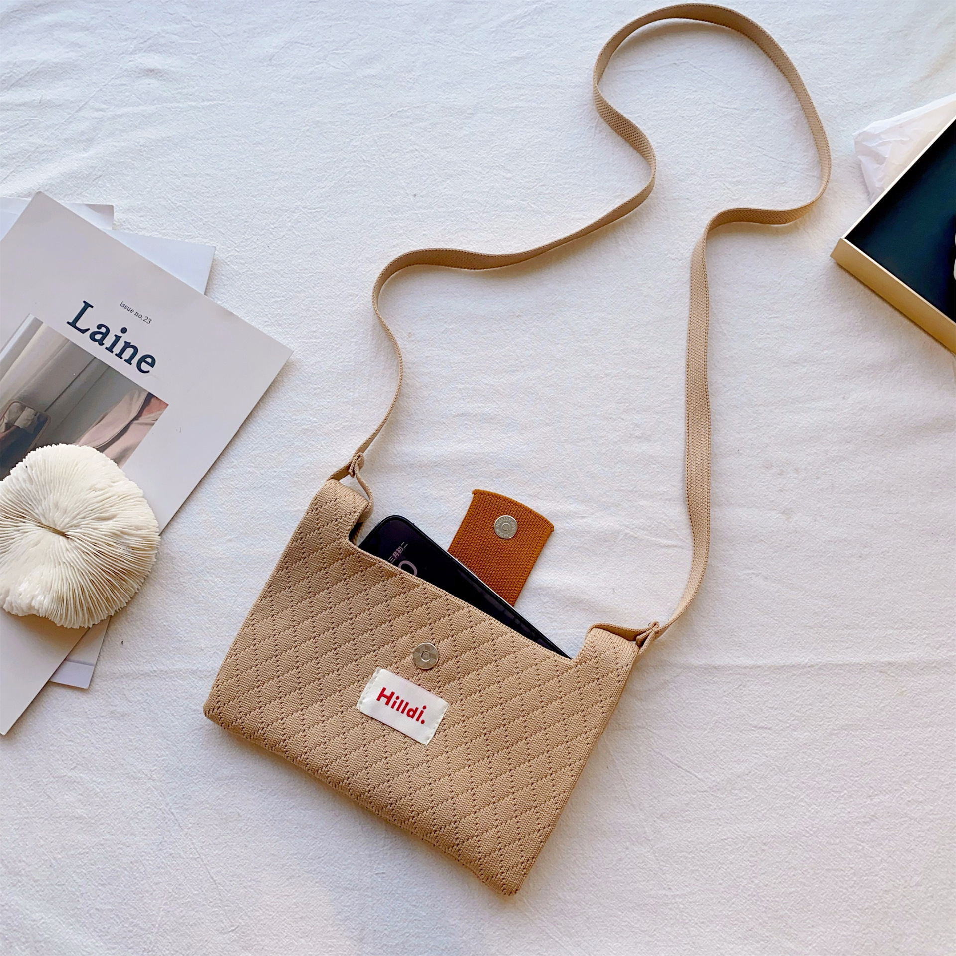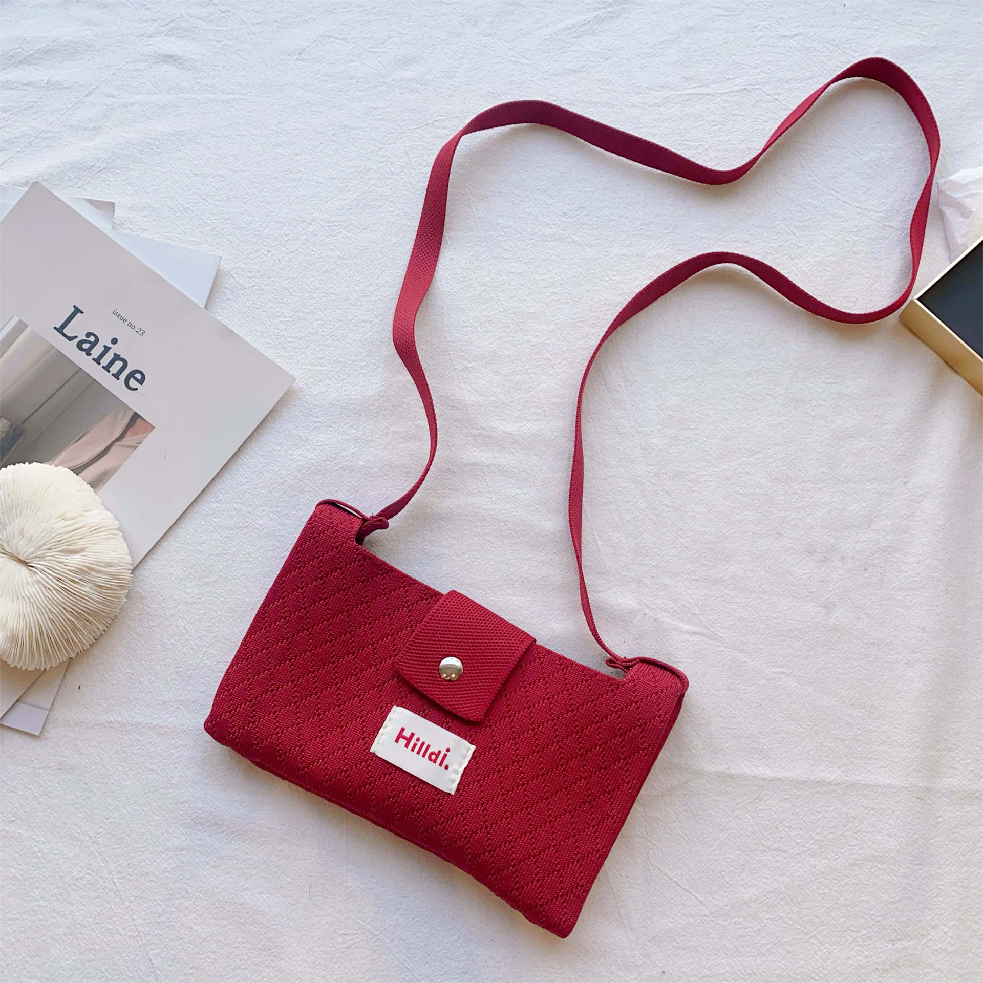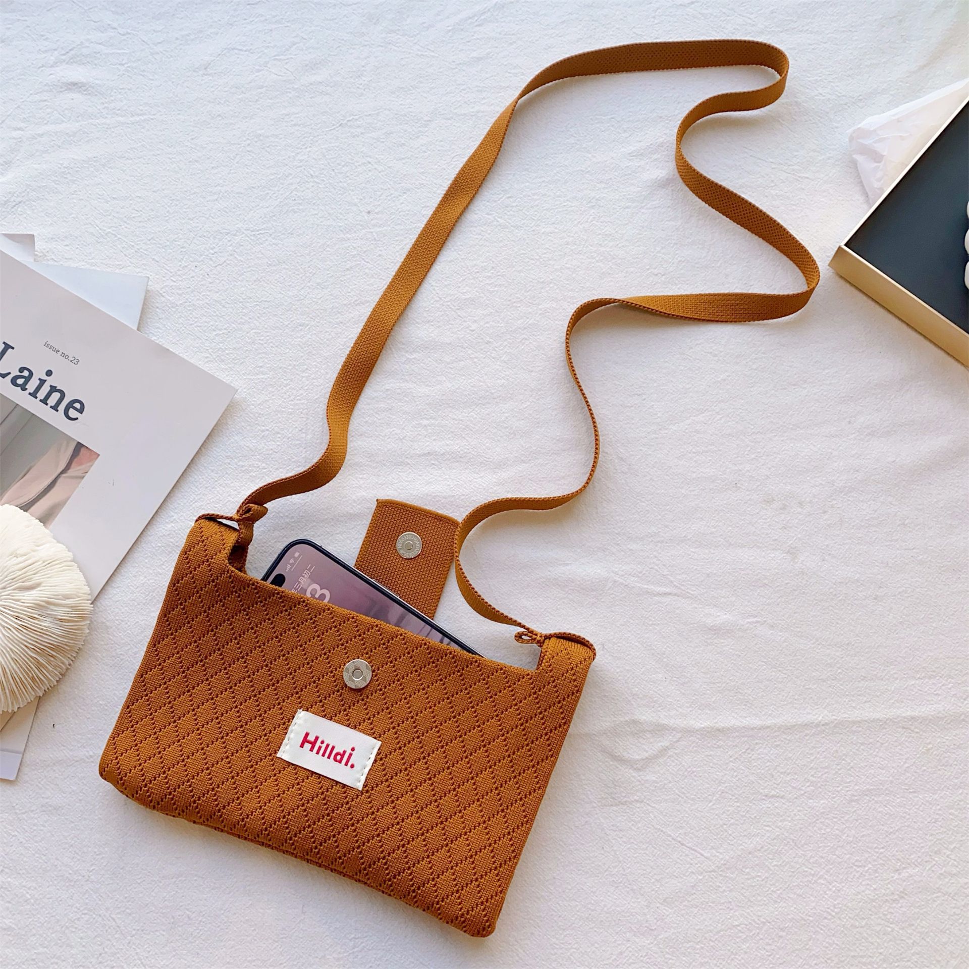 일본과 한국 스타일의 작은 신선한 미니 크로스 바디 백 장난스러운 귀여운 마카롱 캔디 컬러 니트 휴대 전화 동전 지갑 가방스토어 가기