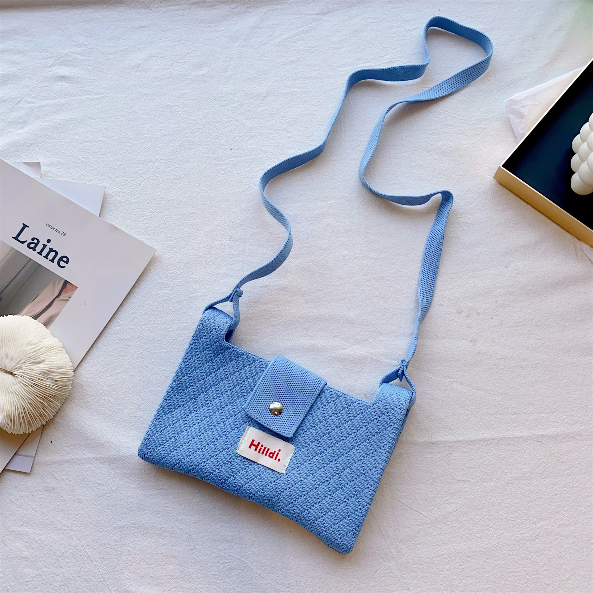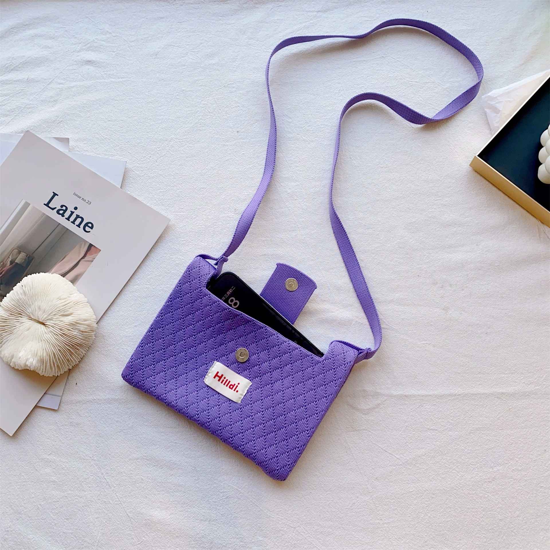 일본과 한국 스타일의 작은 신선한 미니 크로스 바디 백 장난스러운 귀여운 마카롱 캔디 컬러 니트 휴대 전화 동전 지갑 가방