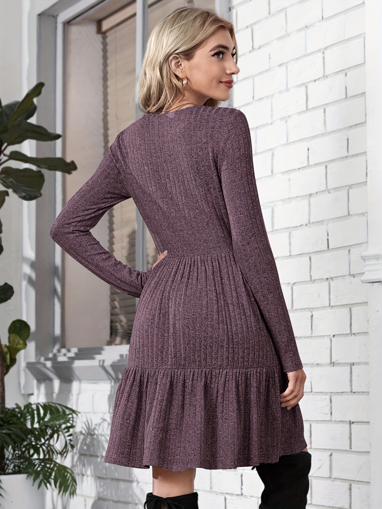 2025 유럽 및 미국 스타일의 우아한 라운드넥 주름 폴리에스터 원피스