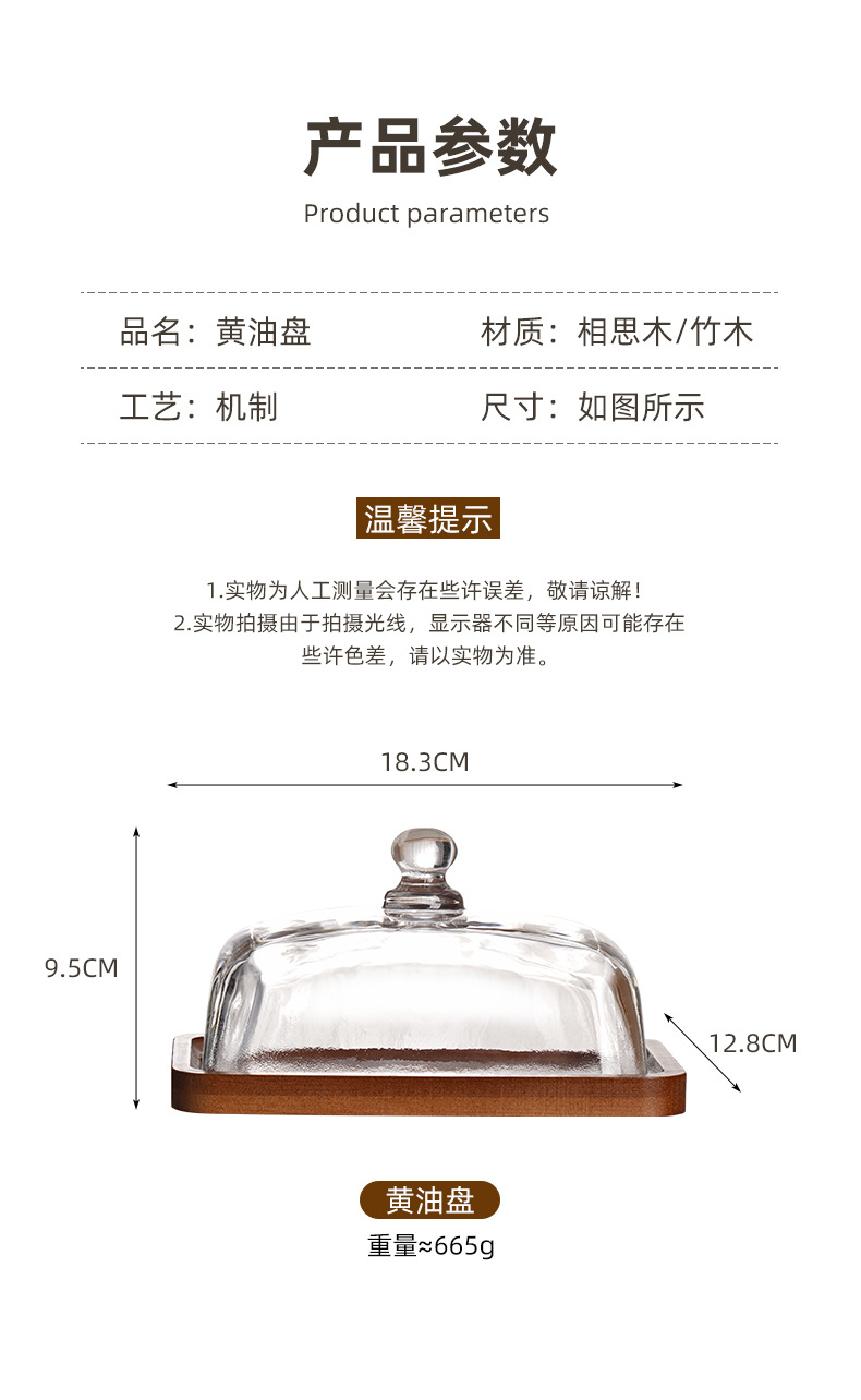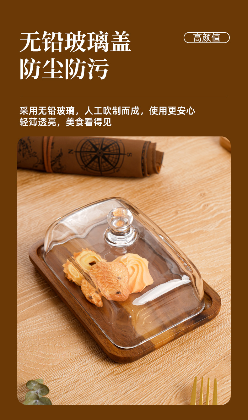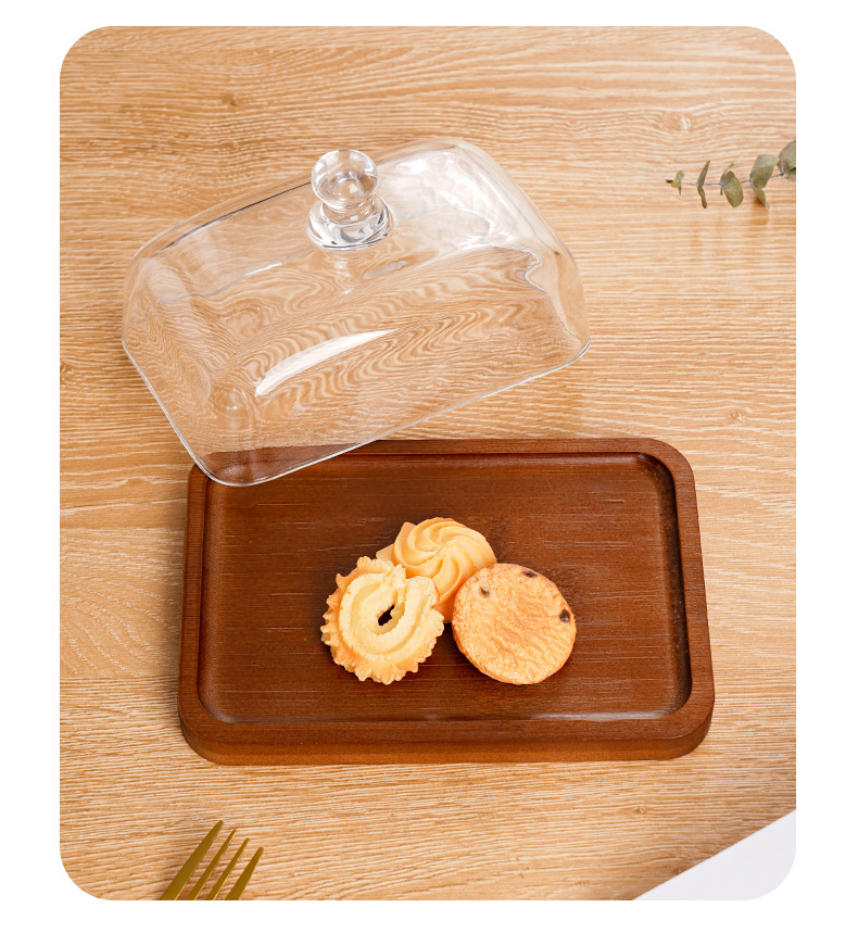 아카시아 나무 케이크 접시 투명 유리 디스플레이 디너 접시 디저트 과자 서양 음식 접시 테이블 버터 접시 국경 간 대외 무역