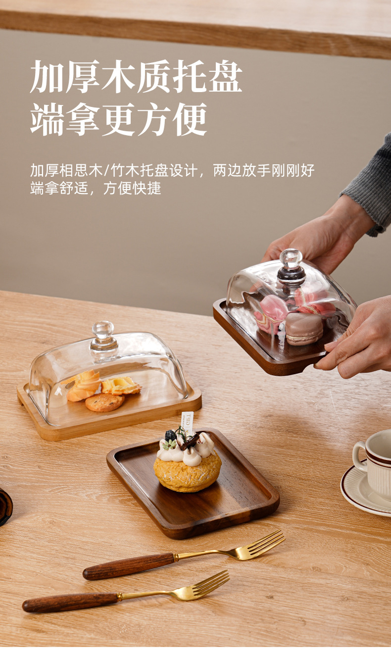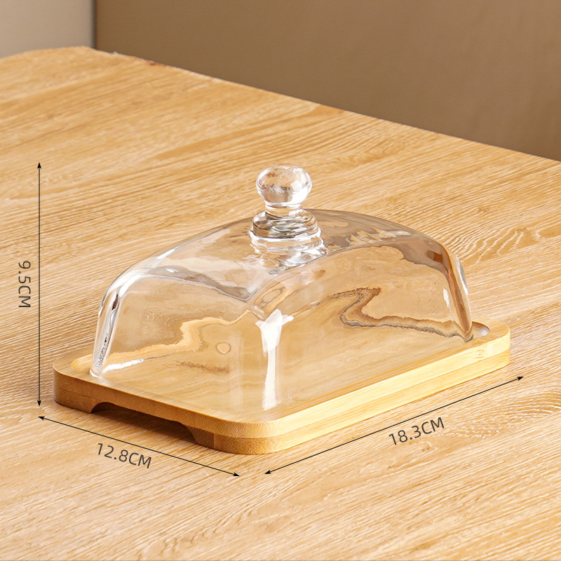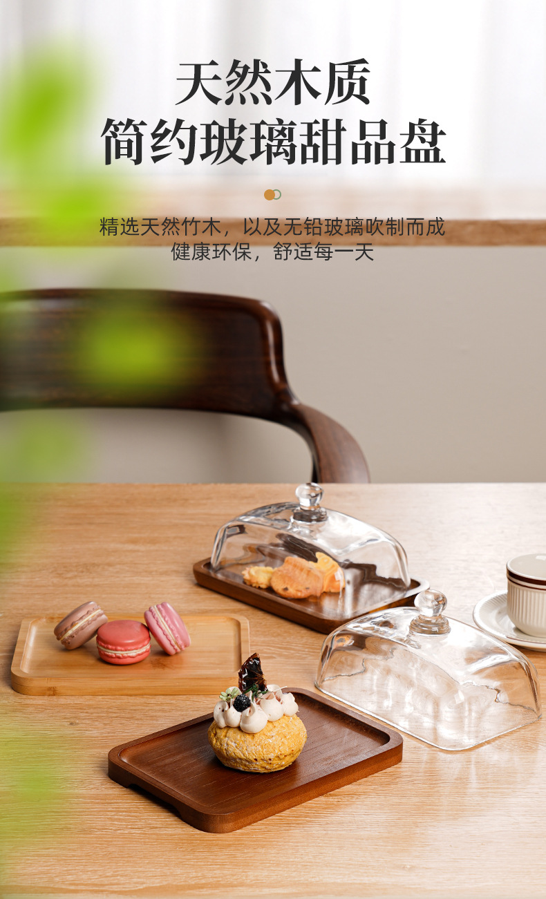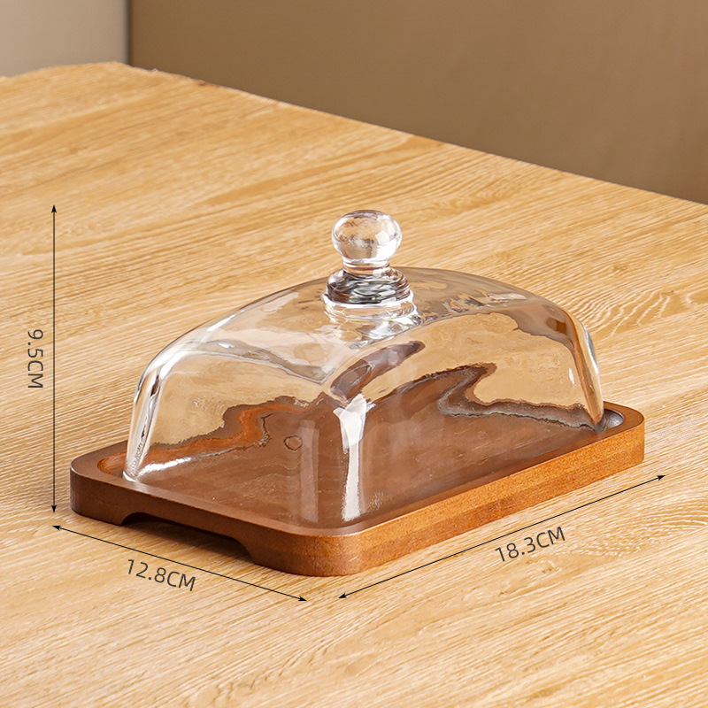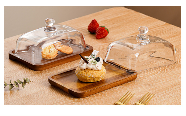 아카시아 나무 케이크 접시 투명 유리 디스플레이 디너 접시 디저트 과자 서양 음식 접시 테이블 버터 접시 국경 간 대외 무역스토어 가기