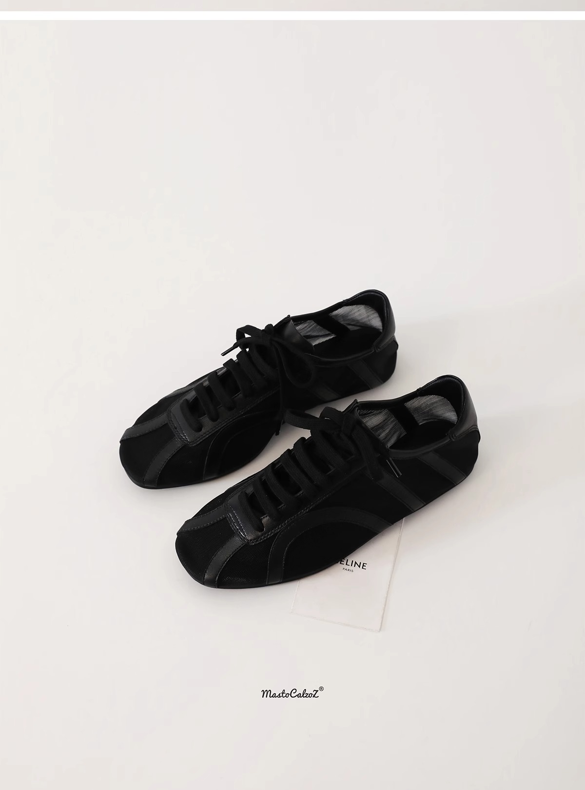 2025년 여름 신상 여성 프렌치 메쉬 통기성 플랫솔 레이스업 다용도 캐주얼 슈즈 레트로 틈새 육군 훈련화스토어 가기