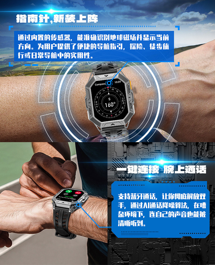 국경 간 X1PRO 스마트 시계 블루투스 통화 음성 보조 기압계 단계 사용자 지침서 나침반 외부 스포츠 시계
