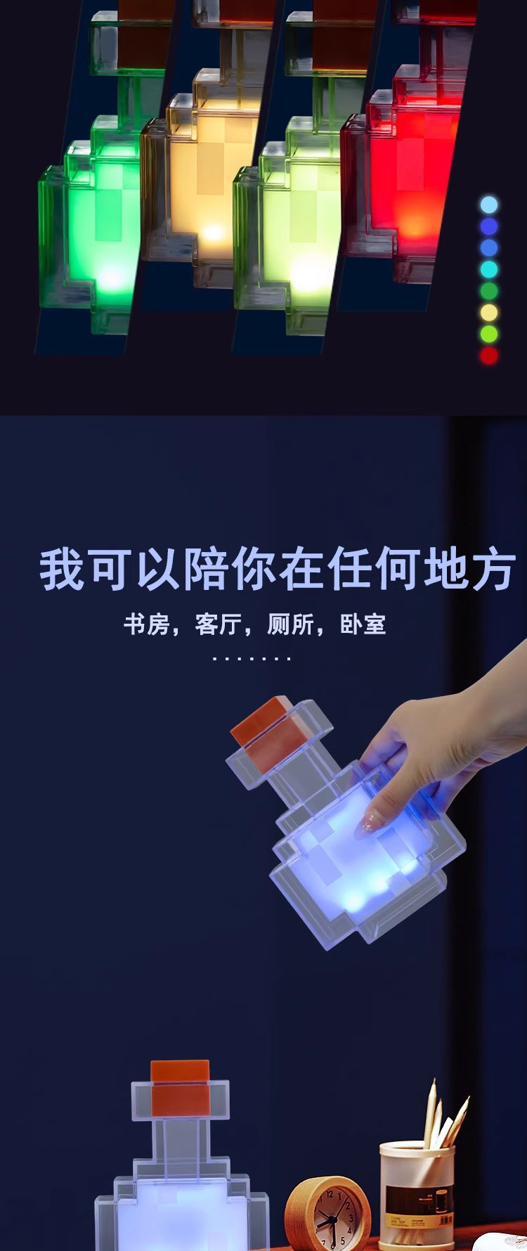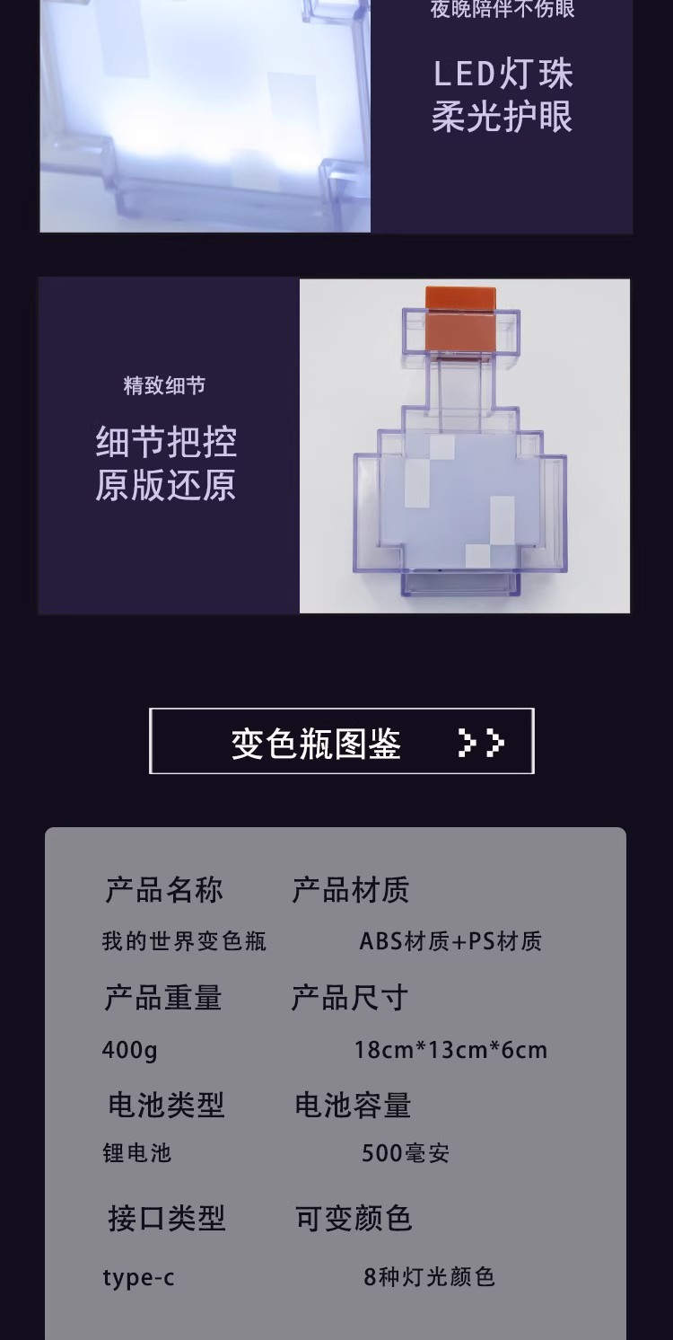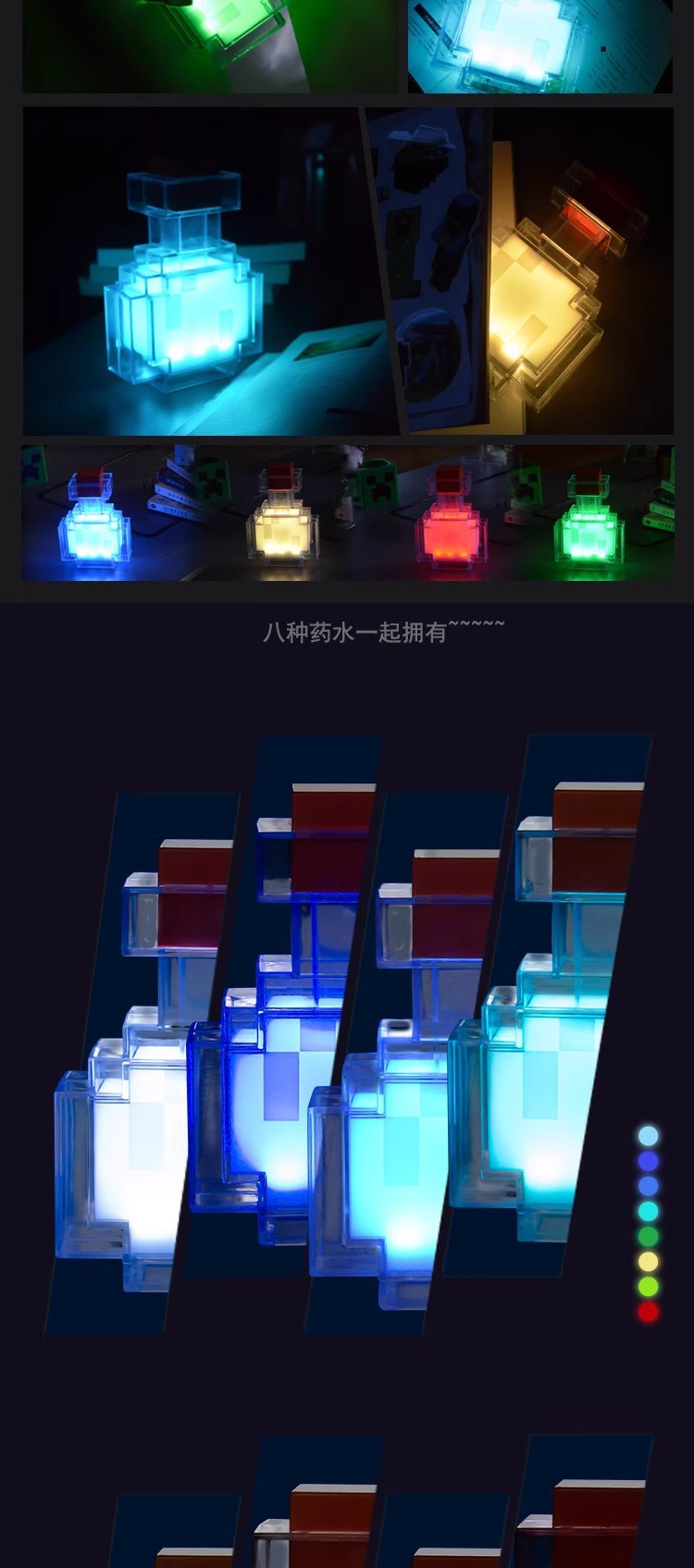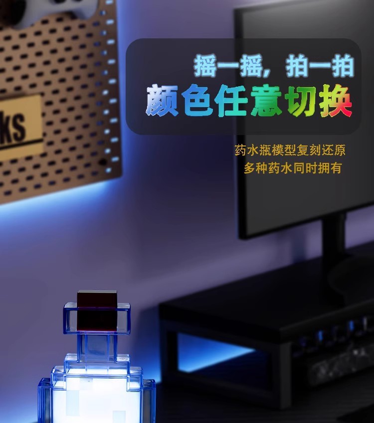 MC 마인크래프트 주변 장난감 선물 8색 15색 변색 물약병 모델 음성 제어 야간등 충전식스토어 가기