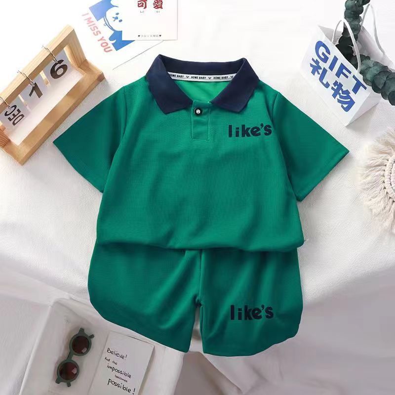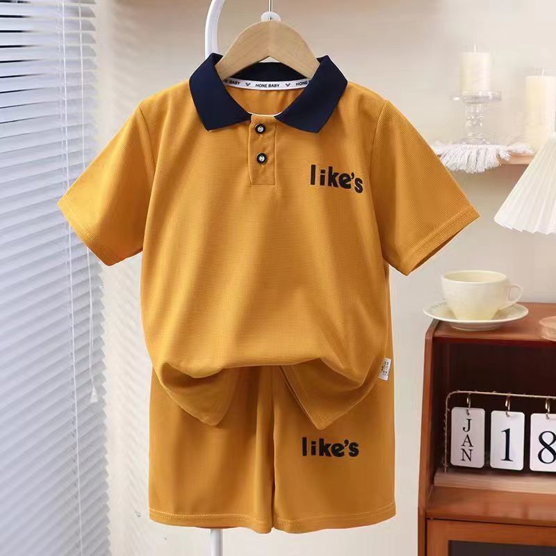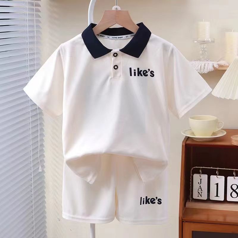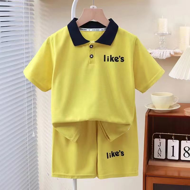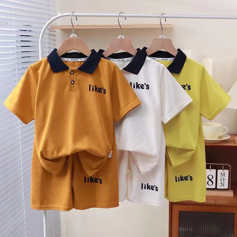 2025 여름 어린이 신작 폴로 신작 와플 반팔 양복 한국식 투피스 세트 도매 트렌드