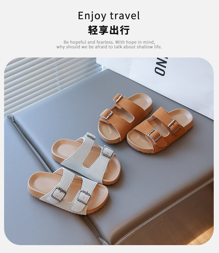 2025 새로운 여름 소녀 슬리퍼, 패셔너블한 캐주얼 신발, 해변 아동 신발, 가죽 슬리퍼 도매 및 배송스토어 가기
