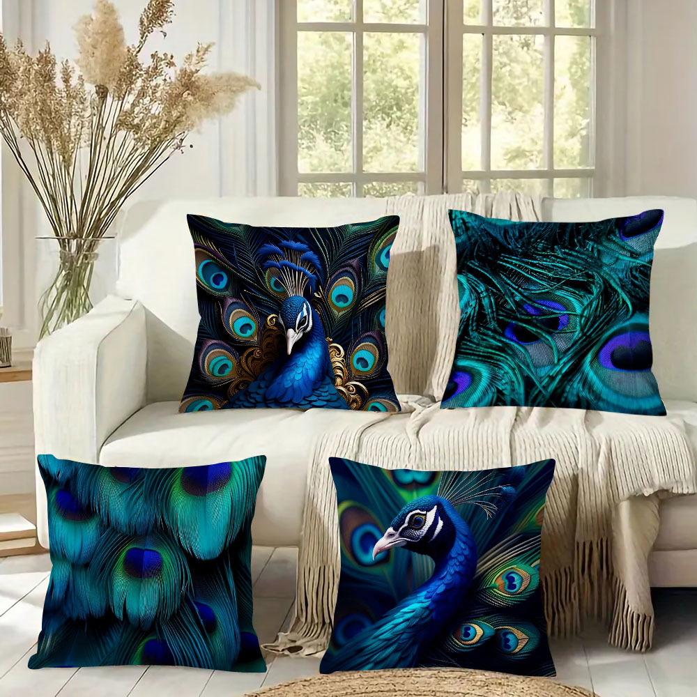 국경 간 뜨거운 판매 테무 우아한 공작 패턴 베개 커버 거실 소파 침실 린넨 통기성 쿠션 커버 도매스토어 가기