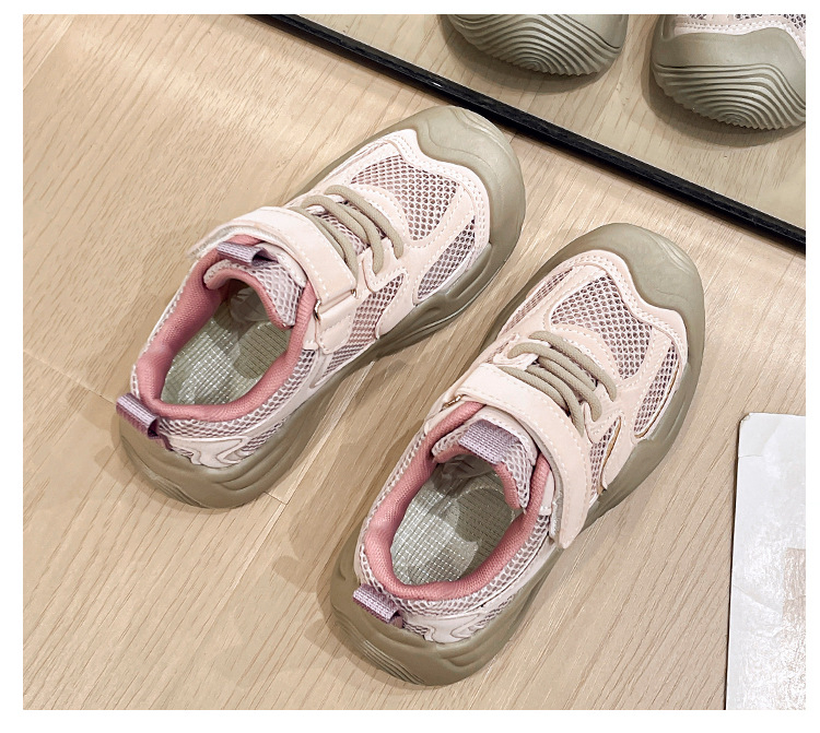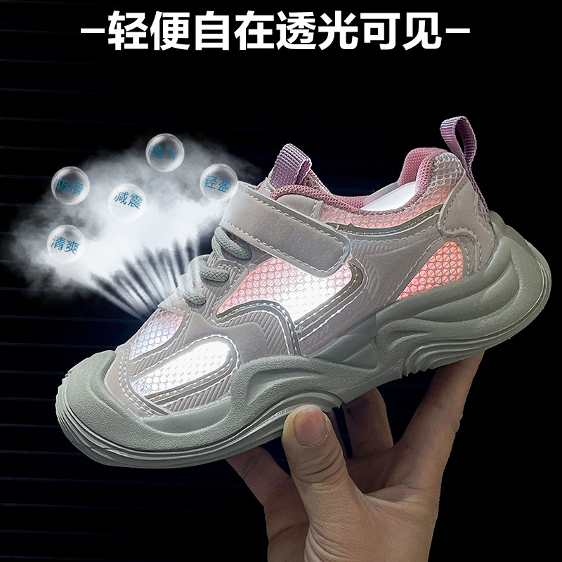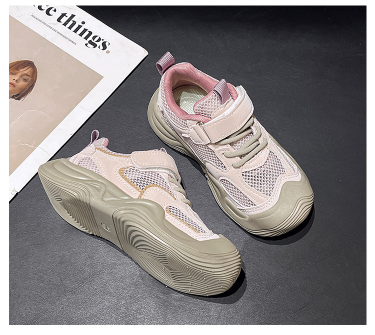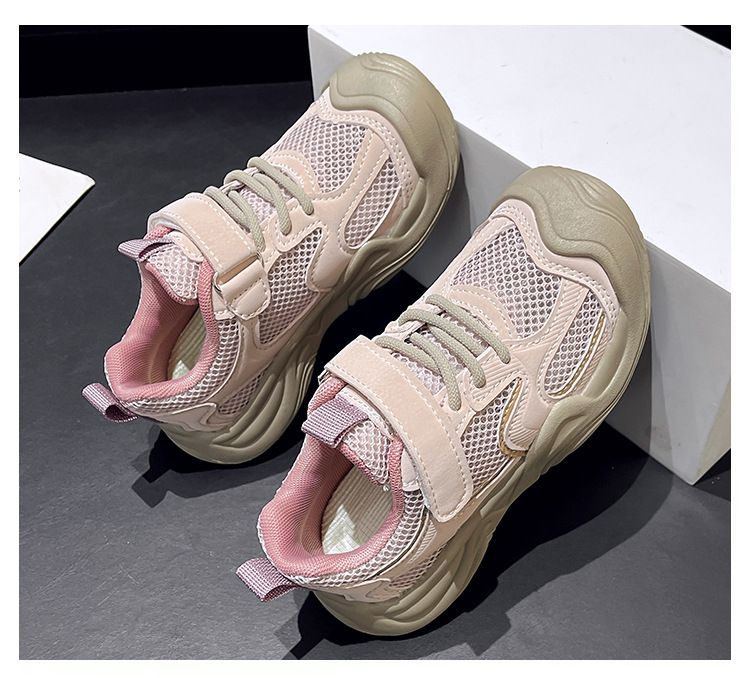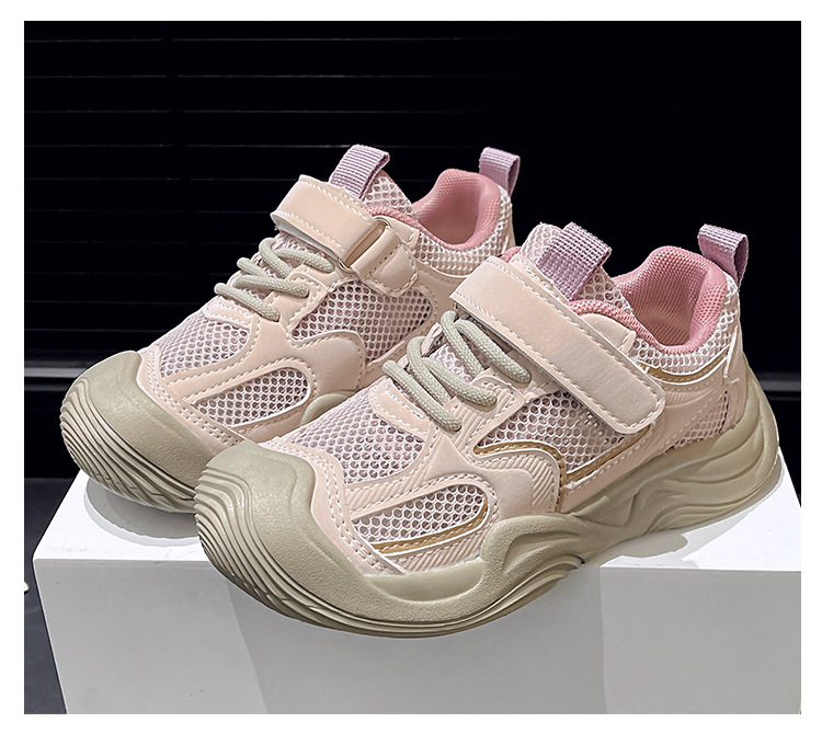 2025 년 여름 새로운 싱글 넷 어린이 신발 캐주얼 운동화 봄 가을 신발 여자를위한 더블 넷 운동화