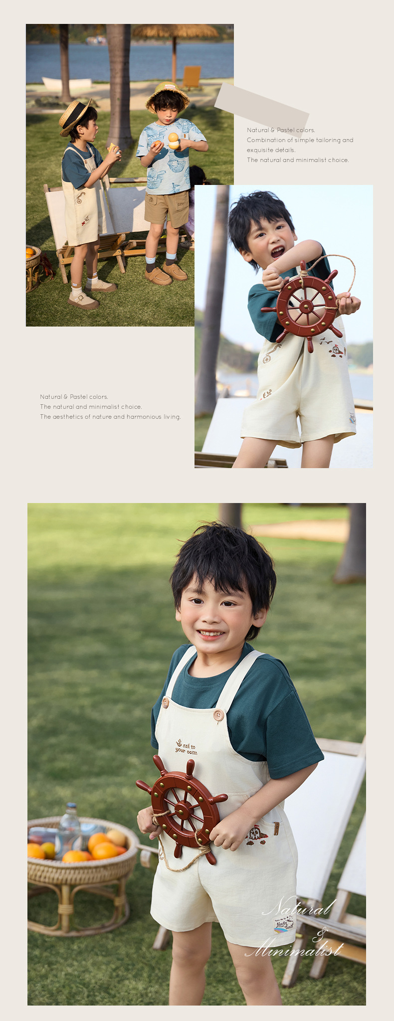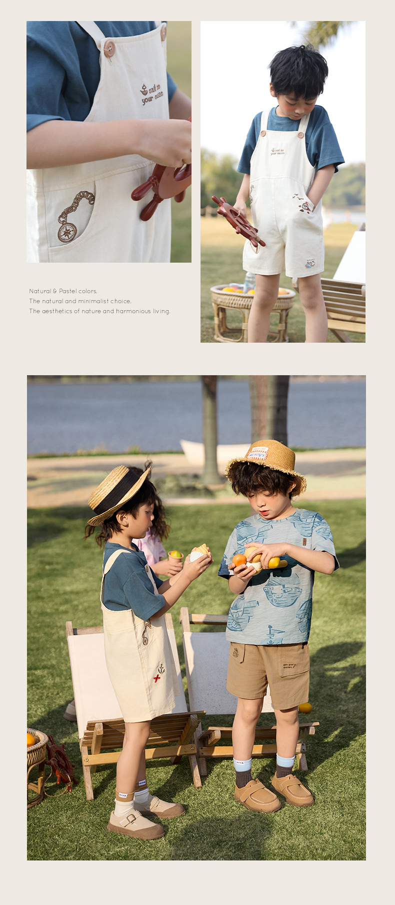 neza [섬의 보물찾기 꿈] 아동 여름 작업복 남성 봄 아기 작업복 A급 순면 반바지