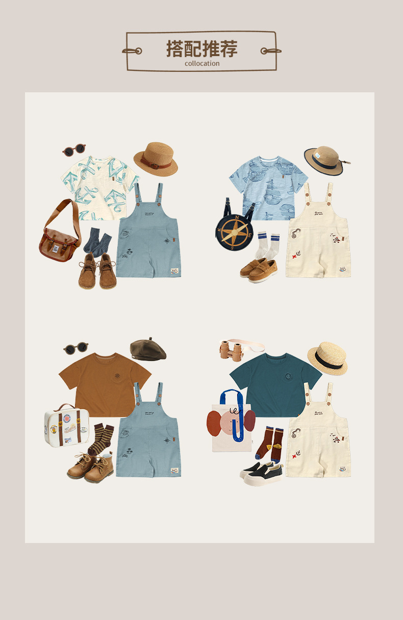 neza [섬의 보물찾기 꿈] 아동 여름 작업복 남성 봄 아기 작업복 A급 순면 반바지스토어 가기