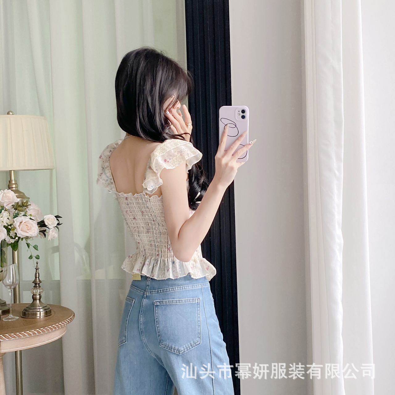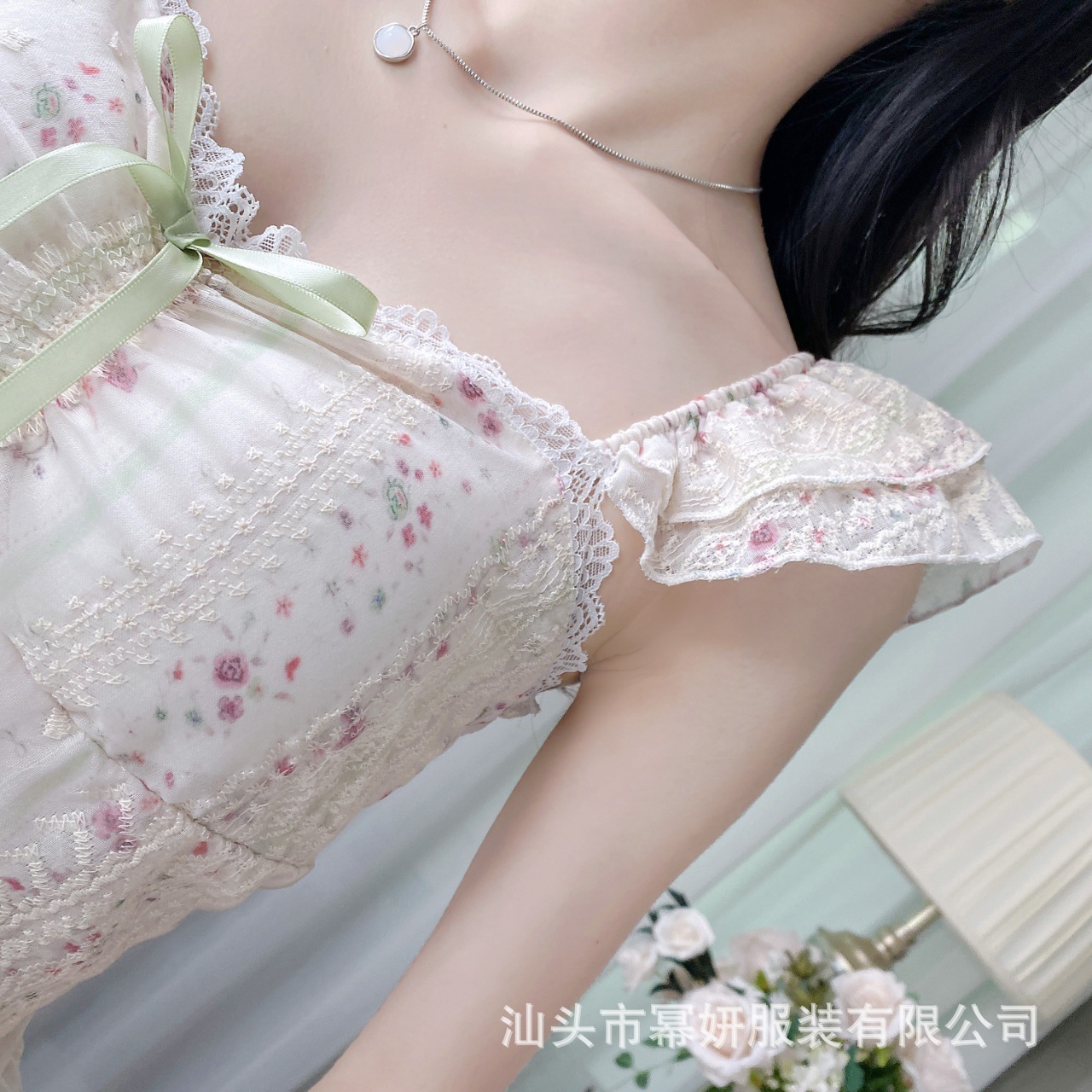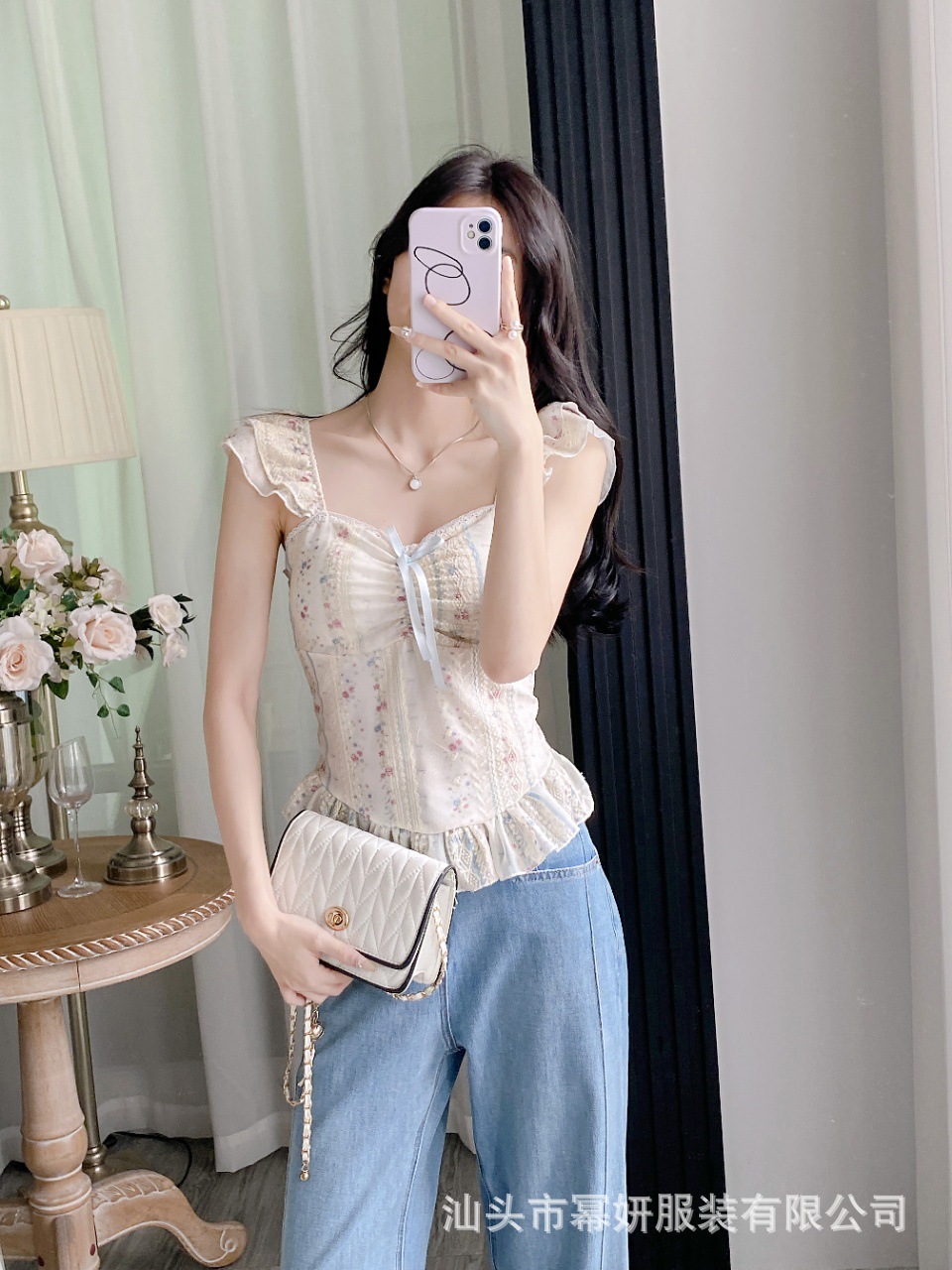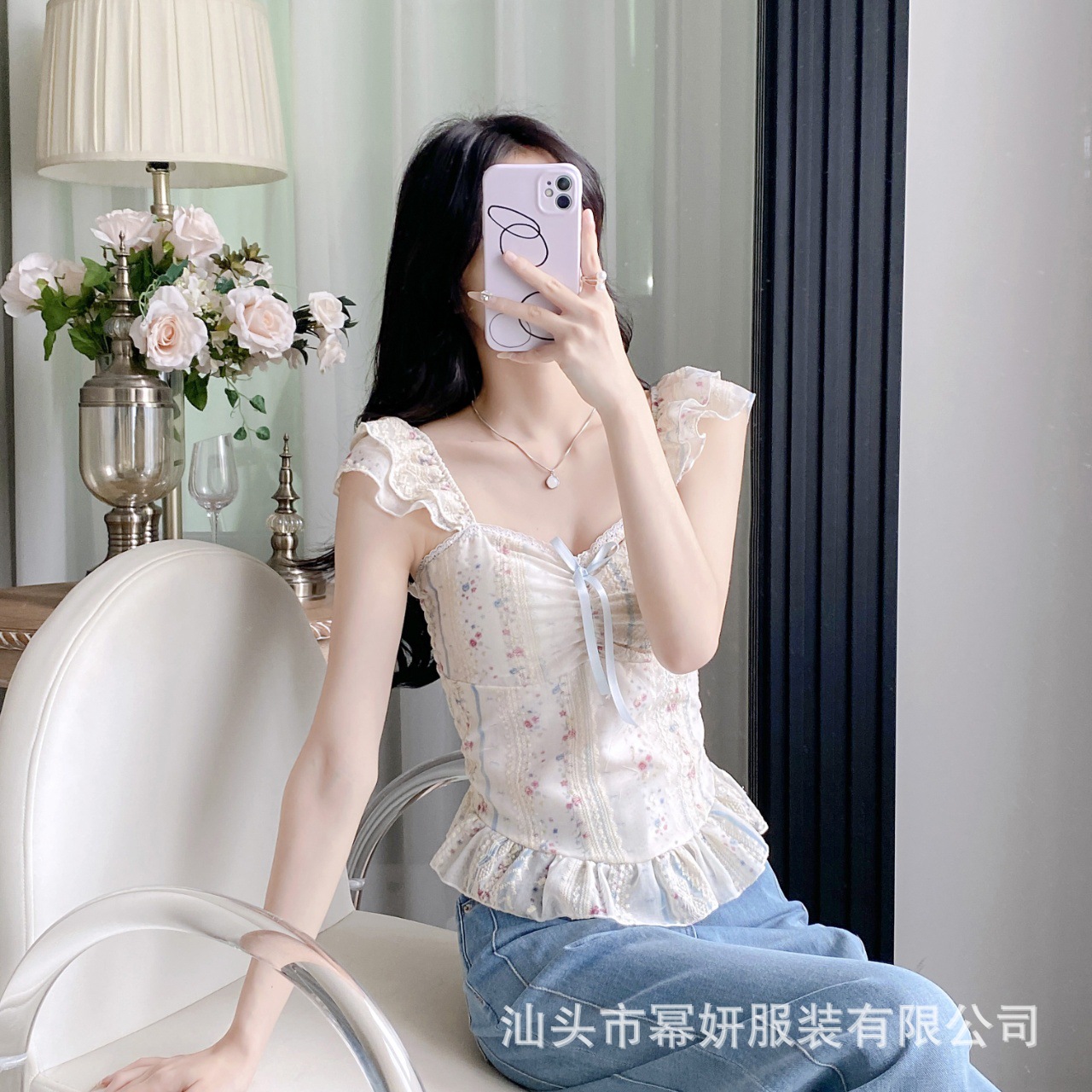 순수한 욕망 달콤한 목가적 스타일의 캐미솔 여성 여름 작은 플라잉 슬리브 꽃무늬 튜브 탑 레이스 아름다운 뒷면스토어 가기