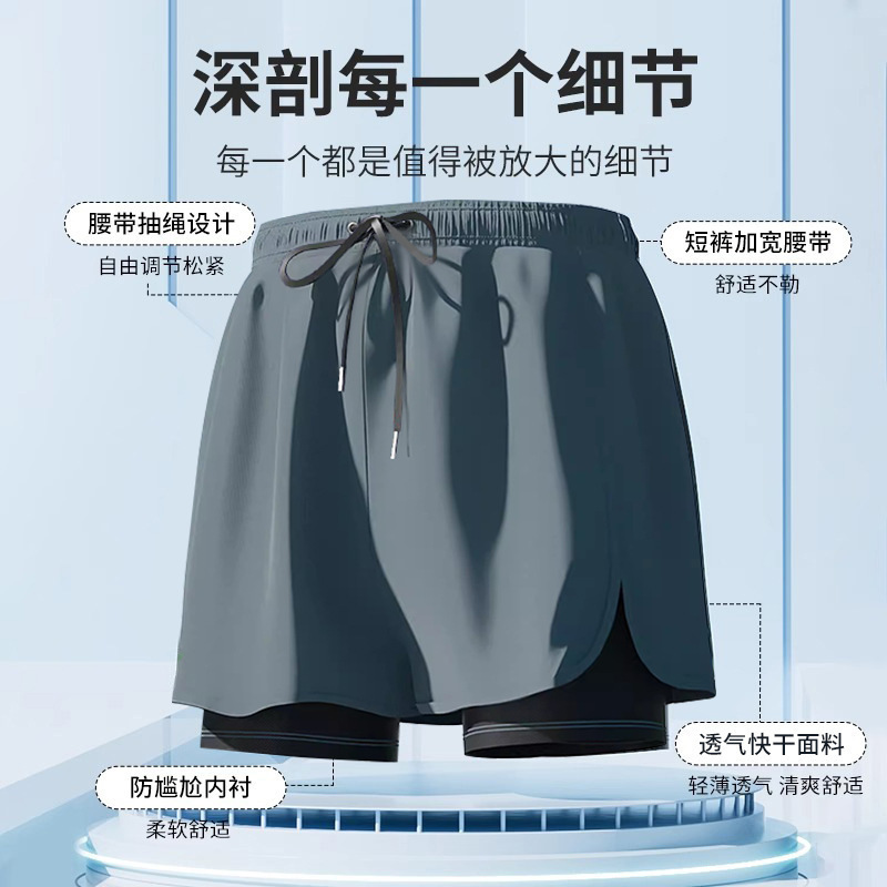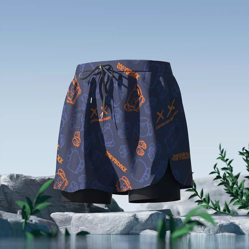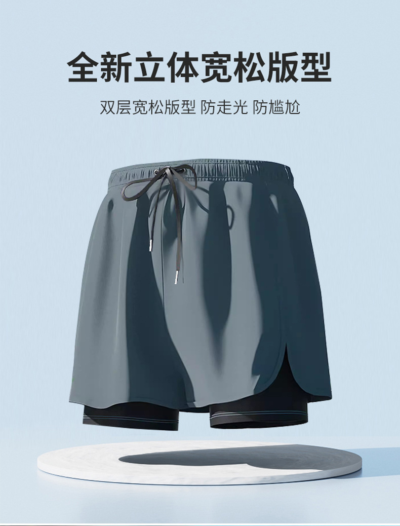 남성용 더블 레이어 수영 팬츠, 성인용 3점 방지, 속건성, 통기성, 신축성, 루즈한 수영 스포츠 비치 팬츠 제조업체