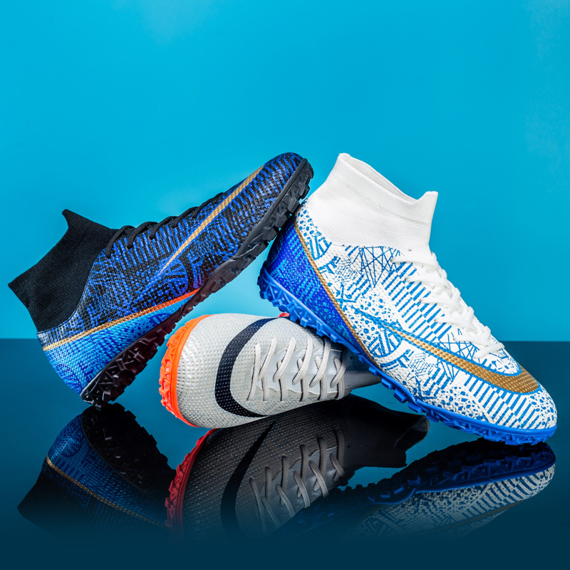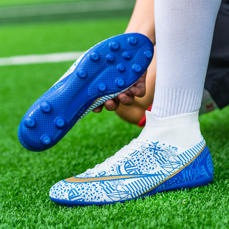 남성과 여성을 위한 크로스보더 하이탑 축구화, 성인용 인조잔디 스파이크, 학생 경기 트레이닝화 2398