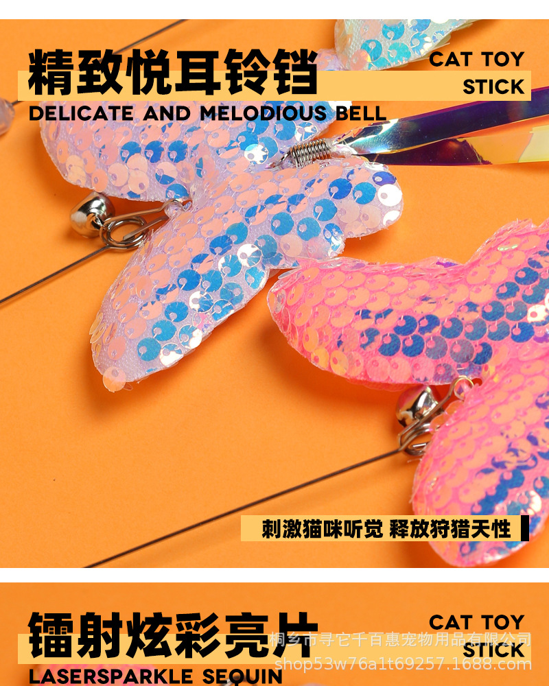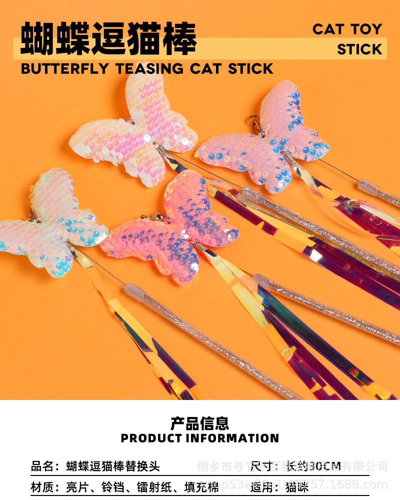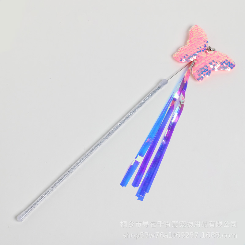 나비 고양이 장난감 고양이 장난감 애완 동물 용품 공장 도매 레이저 스팽글 벨 소리 리본 태슬 작은스토어 가기