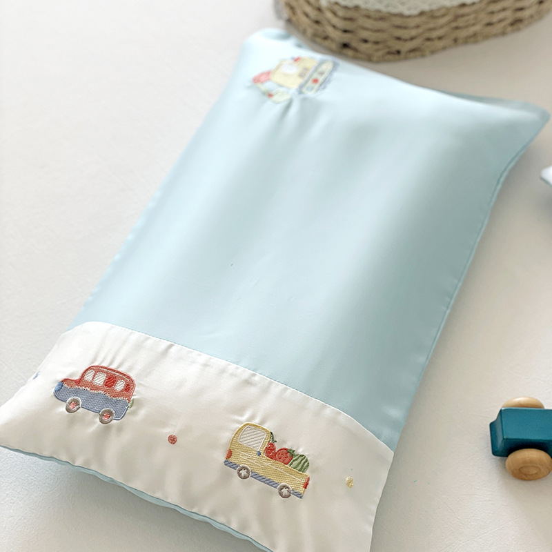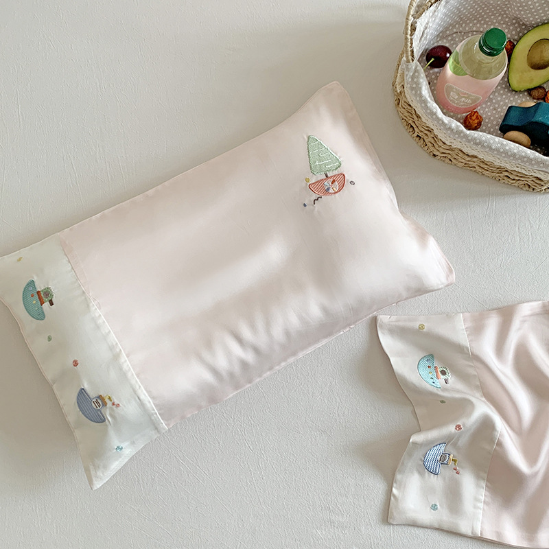 신제품 60 Lanjing 실크의 날 어린이 베개 케이스 솔리드 컬러 자수 베개 배치 여름 쿨 Lyocell 섬유 베개 케이스