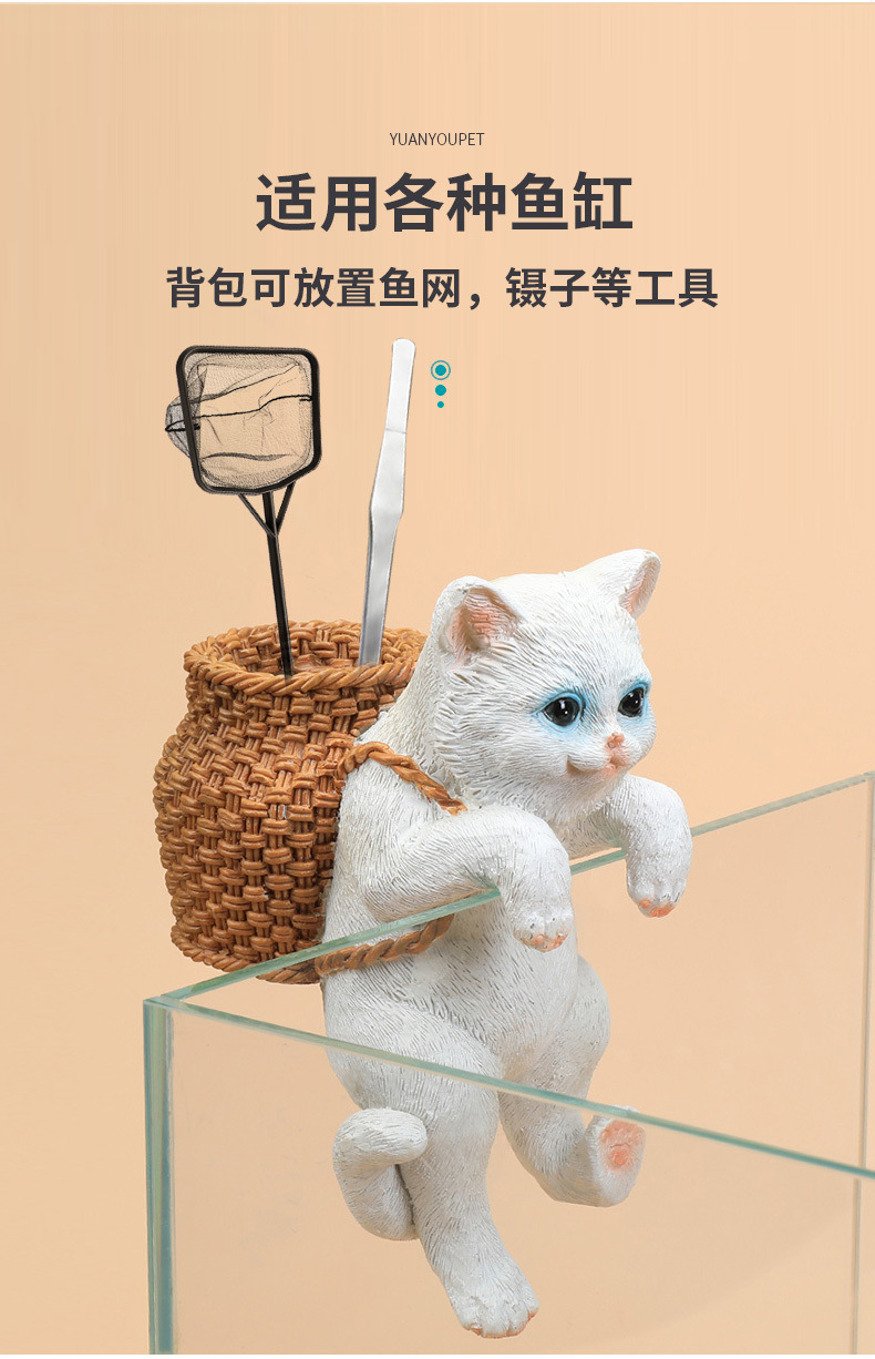 수조 조경 고양이 배낭 수조 옆에 교수형 장식품 수족관 책상 창의적 귀여운 장식 Quanshihui