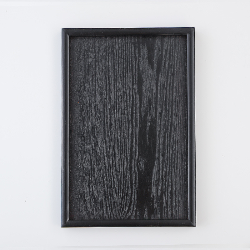 일본식 검은 나무 트레이 직사각형 물 컵 차 트레이 호텔 서빙 트레이 디너 트레이 호텔 단단한 나무 트레이 레터링