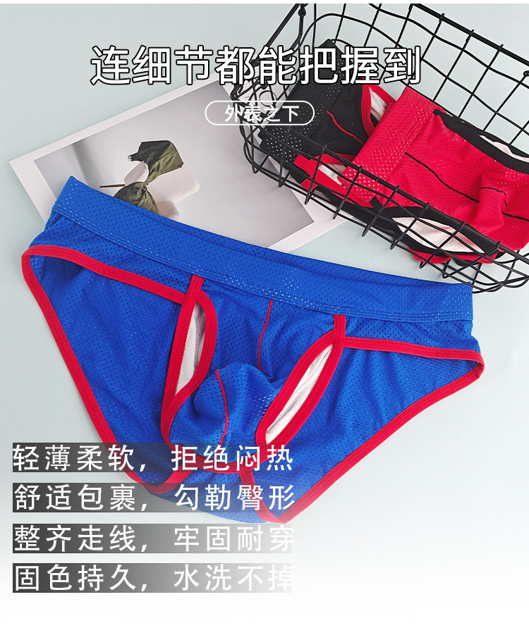 새로운 남성 총알 스타일 분리 된 속옷 악어 포켓 브리프 통기성 측면 개방 얇은 남자 반바지 머리