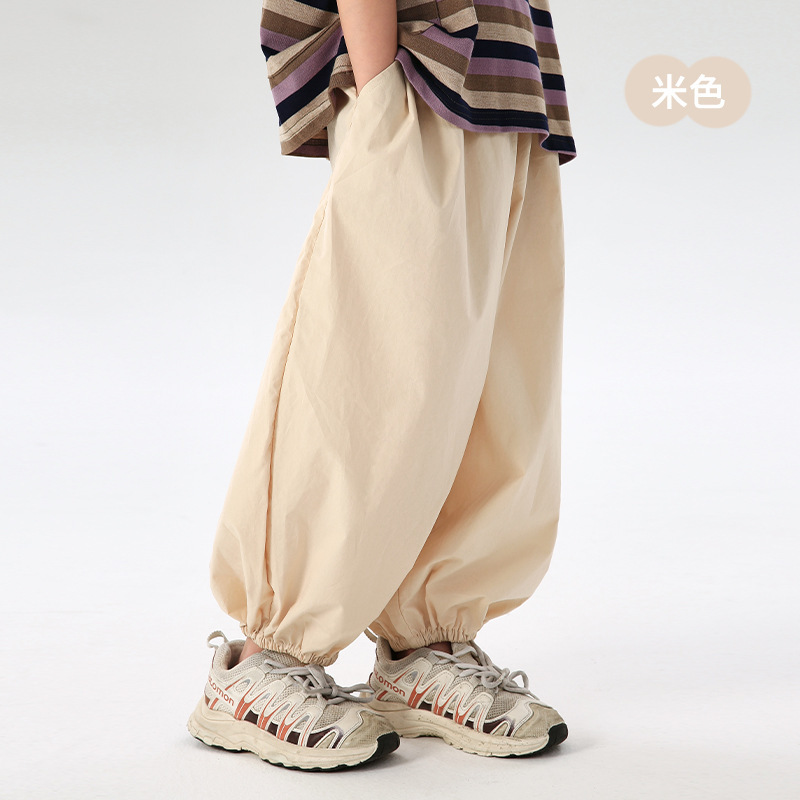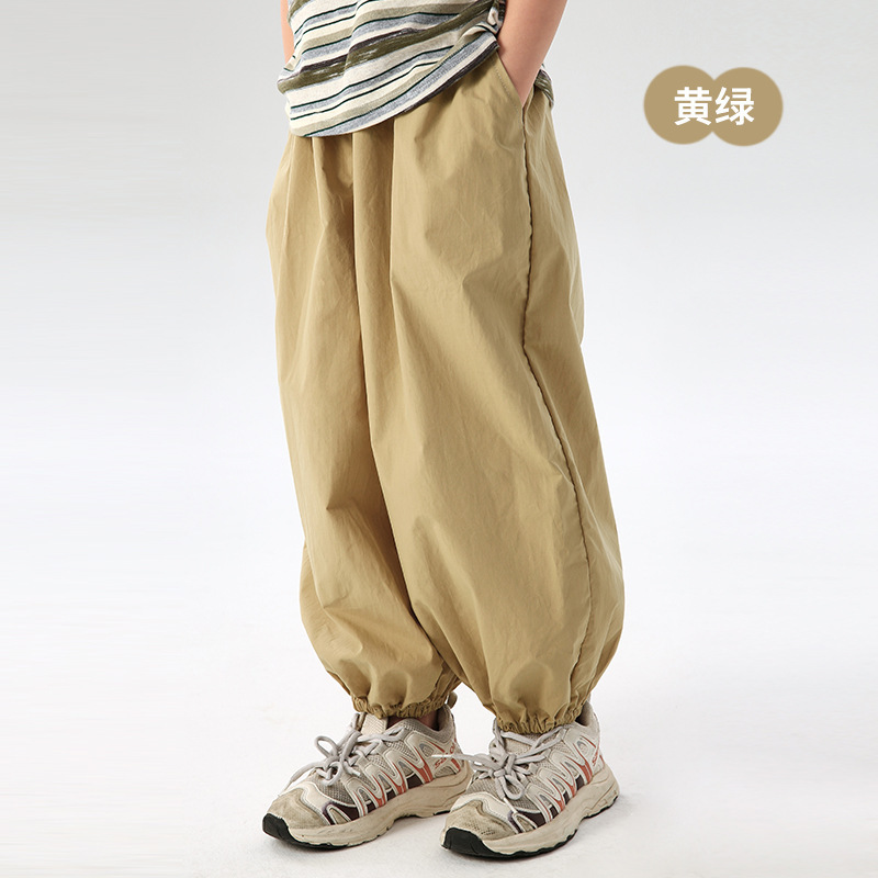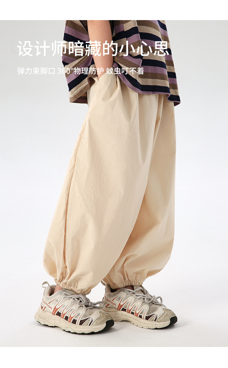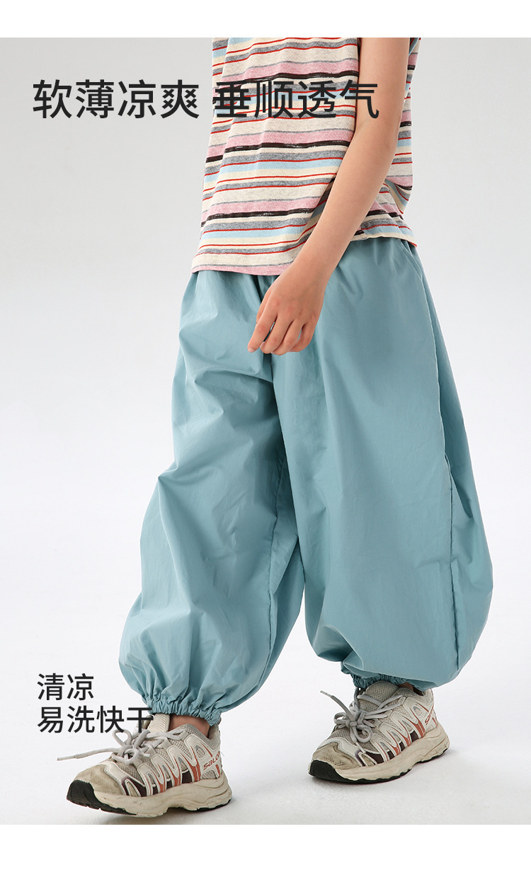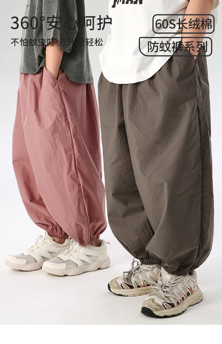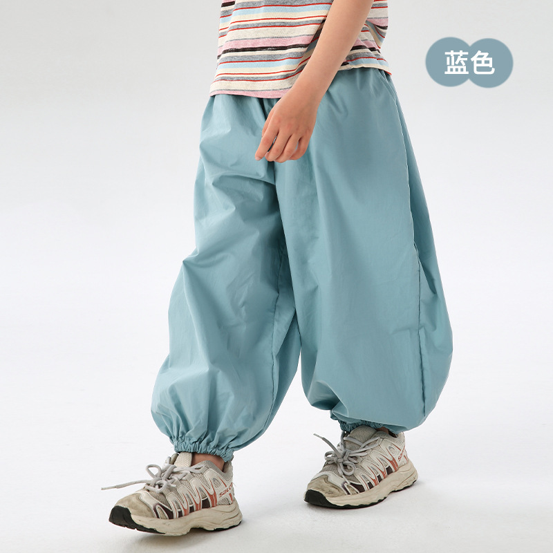 J163 여름 얇은 어린이 모기 방지 바지 솔리드 컬러 통기성 캐주얼 블루머 빗질면 어린이 스포츠 레깅스