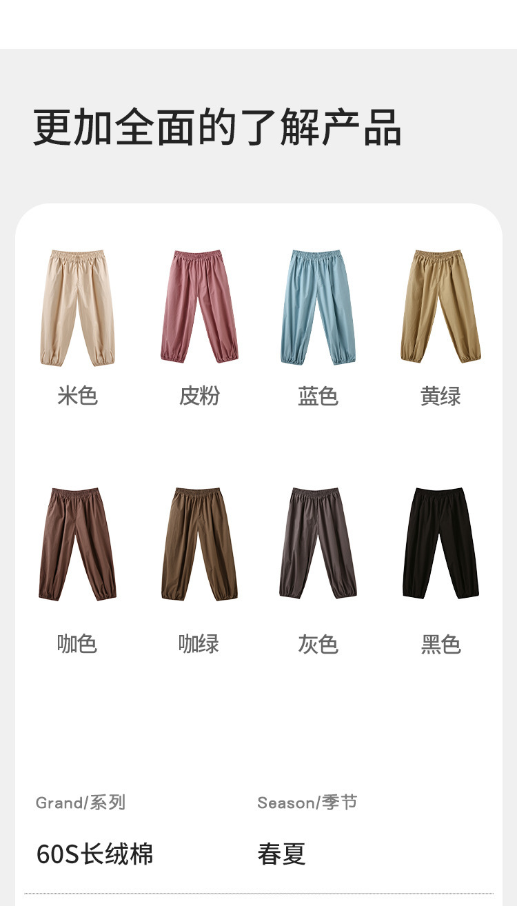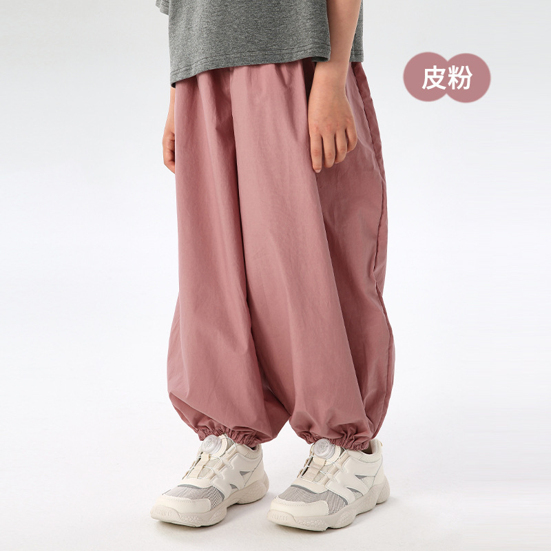 J163 여름 얇은 어린이 모기 방지 바지 솔리드 컬러 통기성 캐주얼 블루머 빗질면 어린이 스포츠 레깅스스토어 가기
