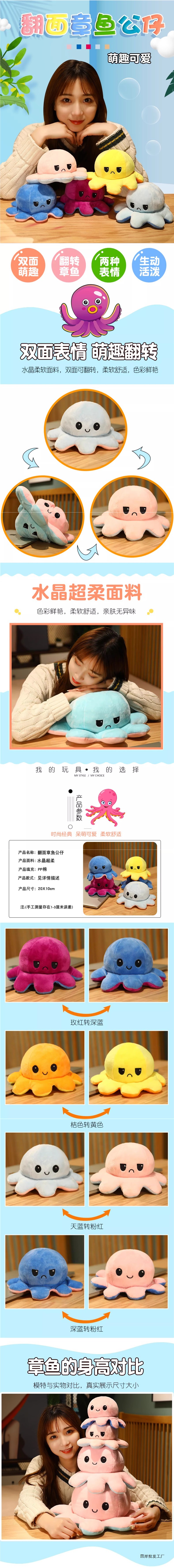 얼굴이 변하는 문어 인형 양면 반전 표현 플러시 장난감 소녀 수면 베개 헝겊 인형 소녀 생일 선물스토어 가기