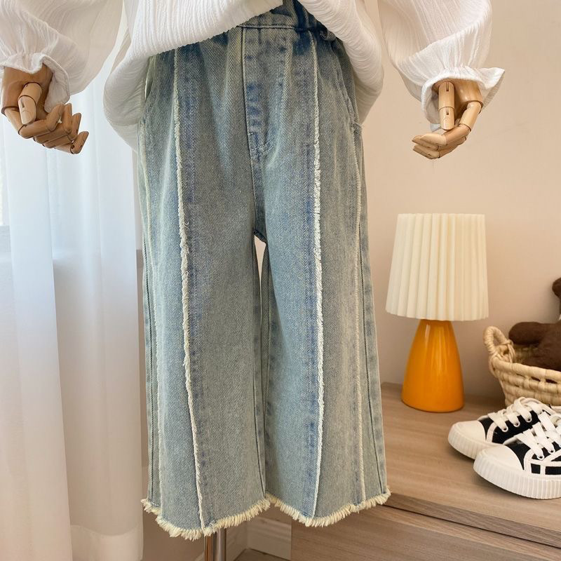 여자 청바지 모피 가장자리가 넓은 다리 바지 서양식 루즈 스트레이트 레그 바지 한국식 트렌디 어린이 바지 민트 맘보스토어 가기