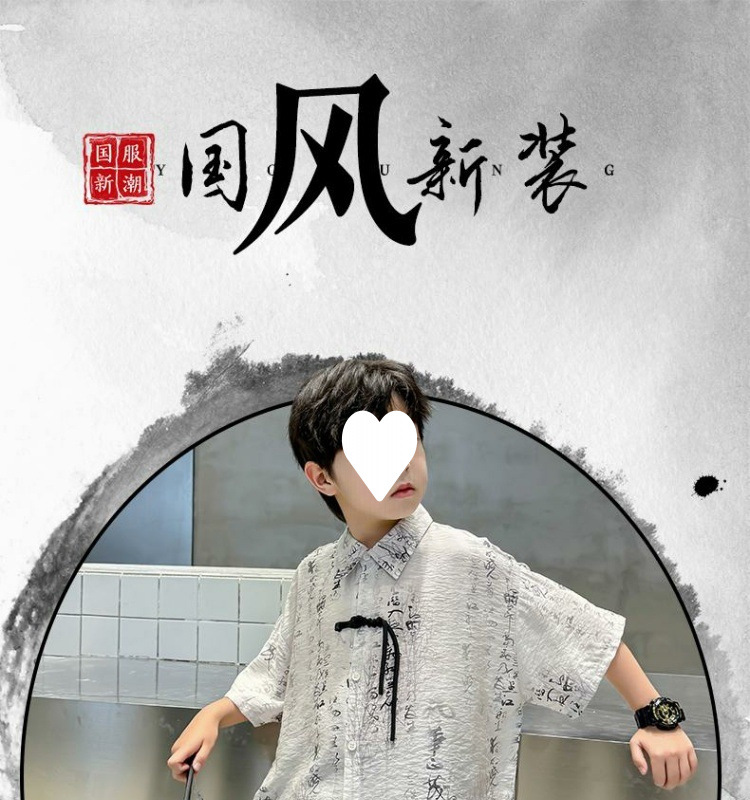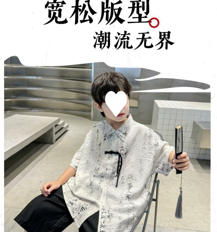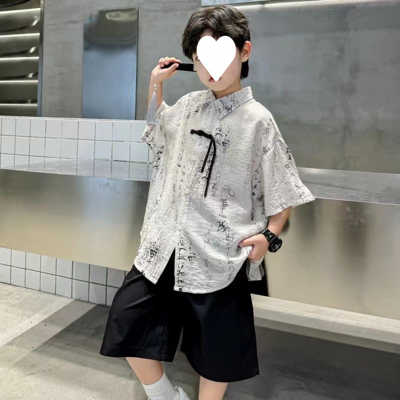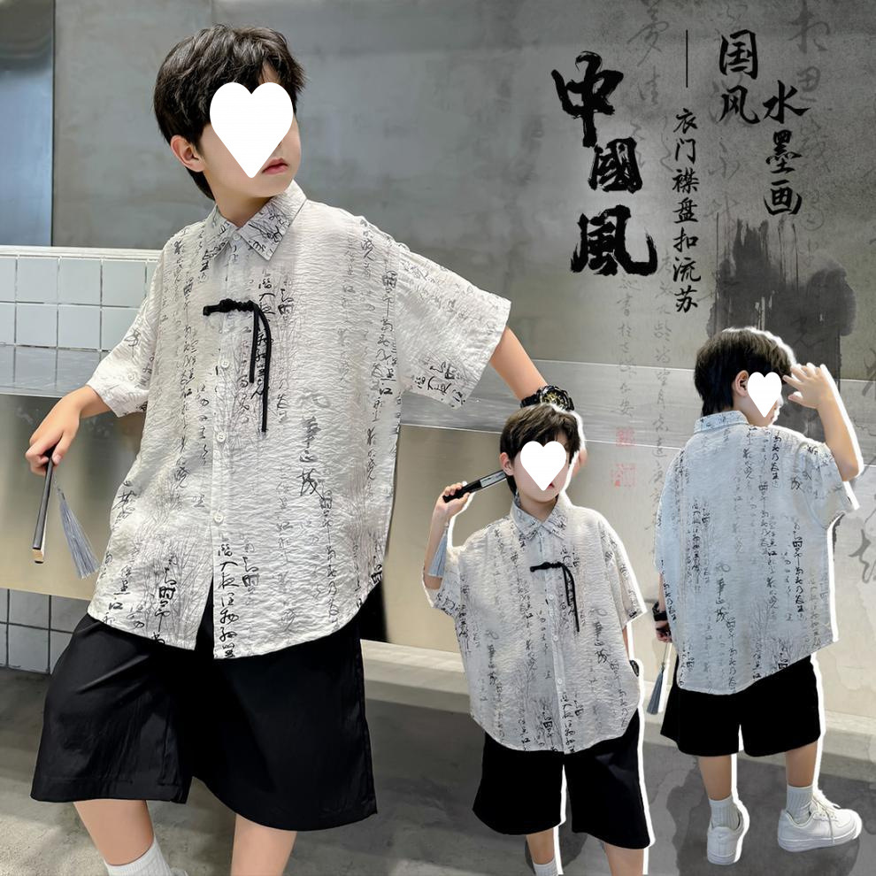소년 2025 여름 새로운 Hanfu 아동 셔츠 잉크 패션 캐주얼 얇은스토어 가기