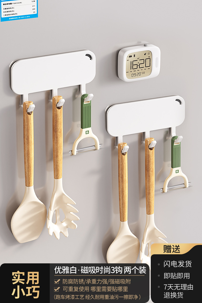 주방 냉장고 측면 자석 후크, 강력한 자석, 문 뒤에 흔적 없는 접착 후크, 펀치 없음, 가정용 주걱 걸이