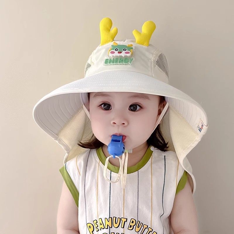 아기 모자 여름 통기성 메쉬 대형 챙 안티 UV 어린이 태양 모자 소년과 소녀 목 보호 숄 모자