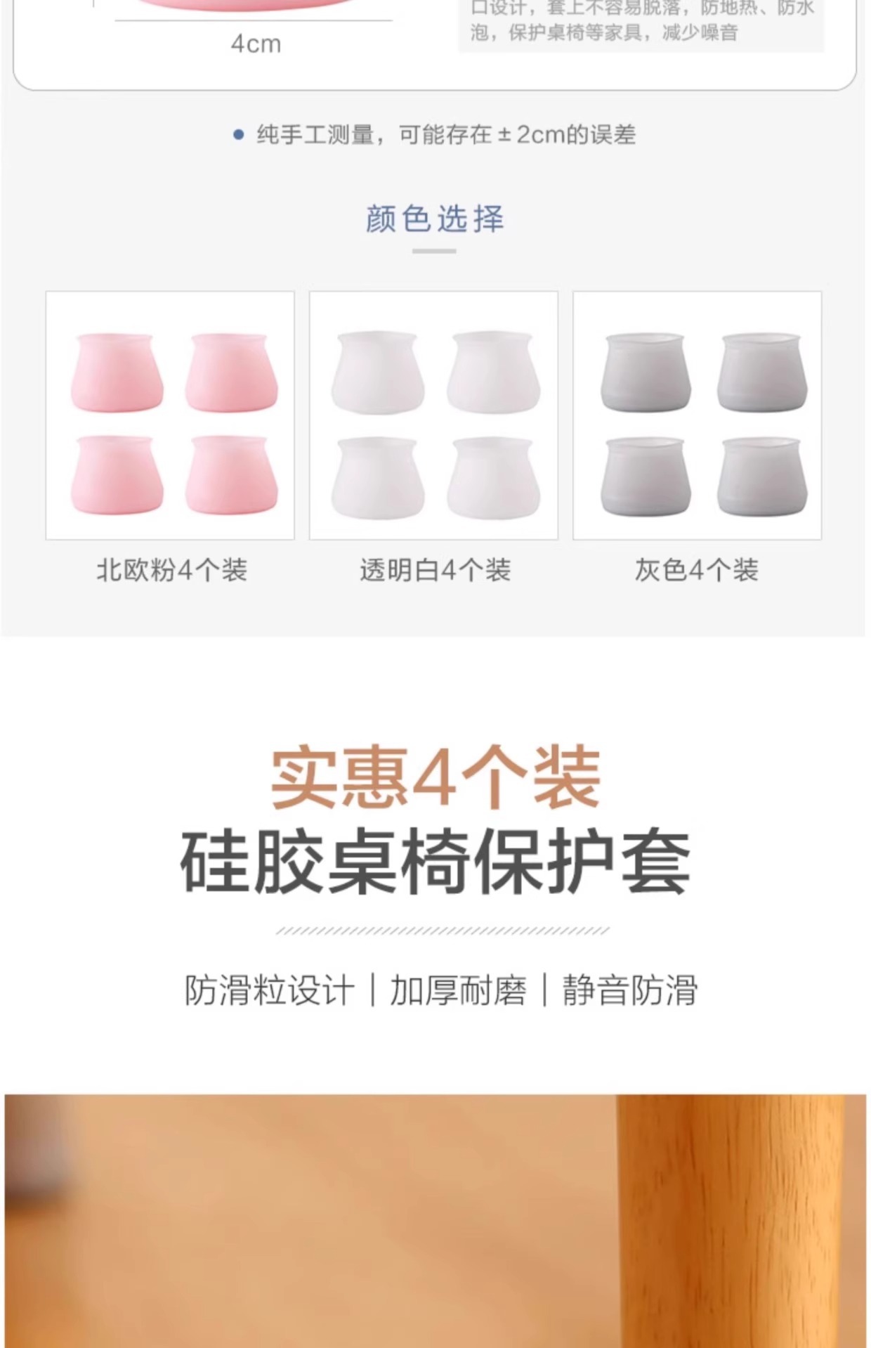 • 모든 테이블 다리에 적합한 투명 흰색 [4개 팩]