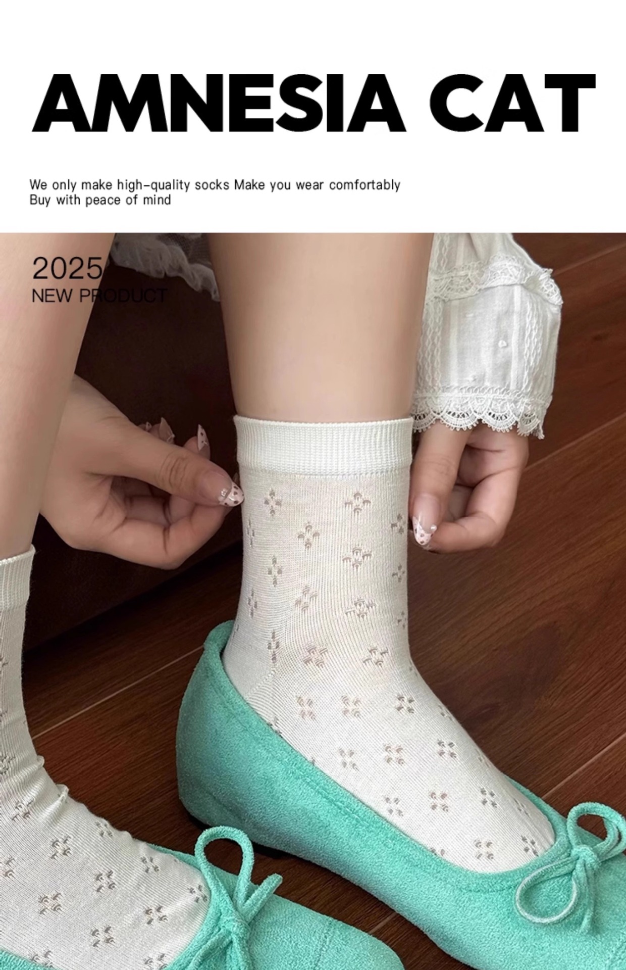 여성용 프렌치 발레 스타일 양말, 순면 종아리 양말, 여름 얇은 인 트렌디 스위트 미우 시리즈, 메리 제인 슈즈 및 양말스토어 가기