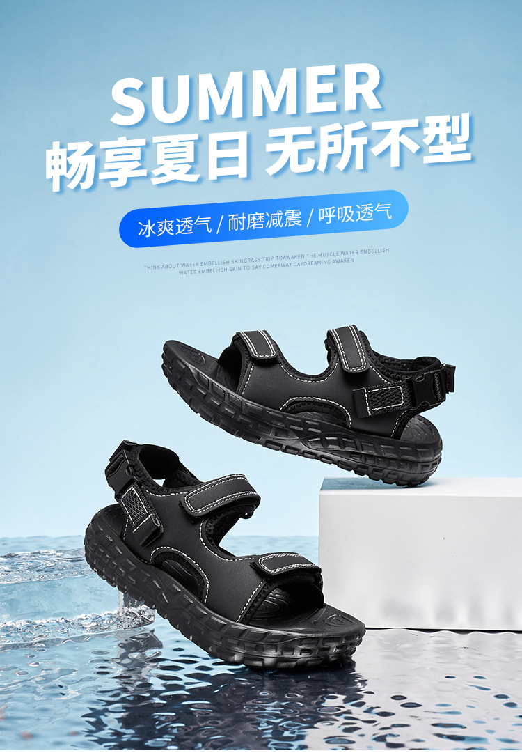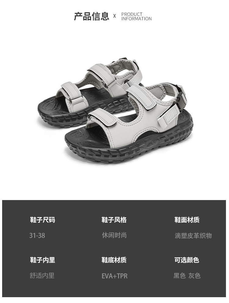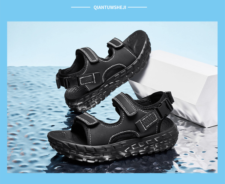 PLUS 소년 샌들 새로운 여름 어린이 패션 학교 샌들 중형 및 대형 소년 미끄럼 방지 부드러운 바닥 해변 신발