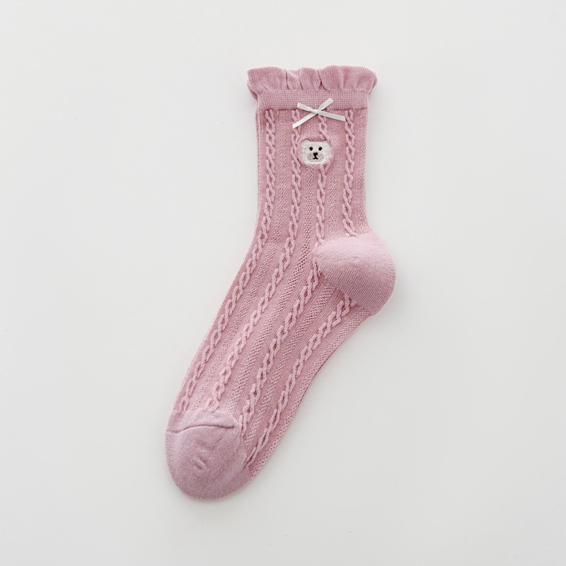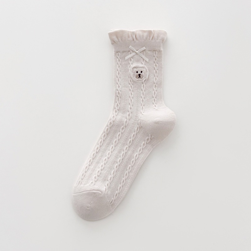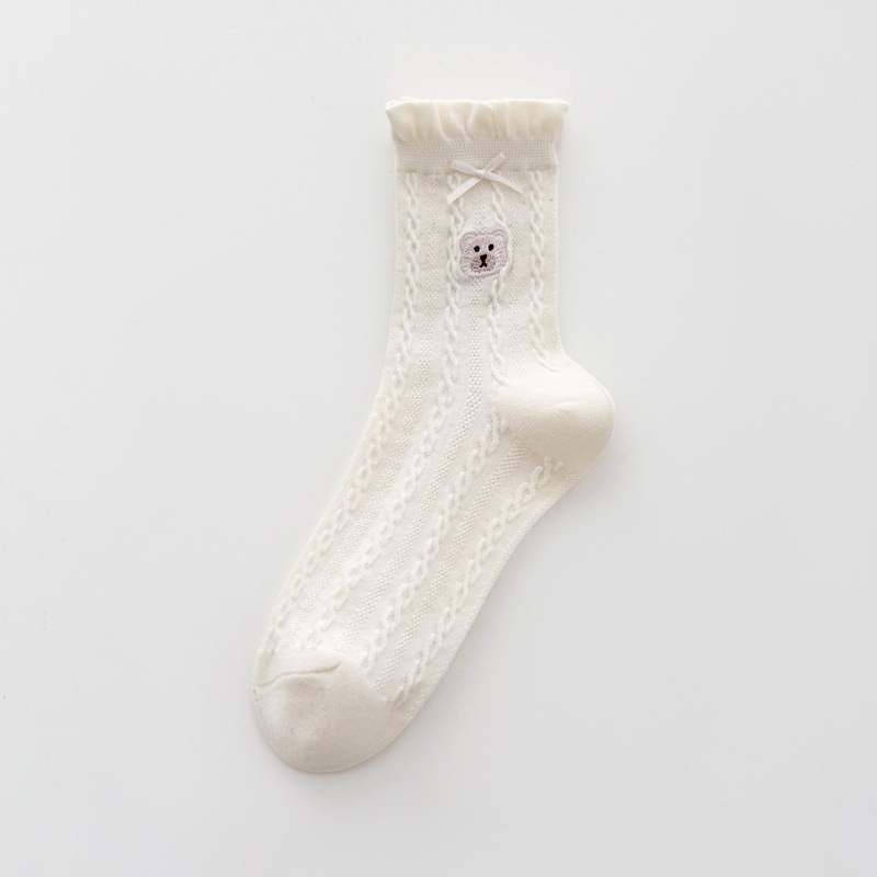 여름 여성용 면 양말, 얇은 종아리 중간 양말, 순면 땀 흡수 및 통기성 자수 강아지 레이스 양말, 다용도 면 양말