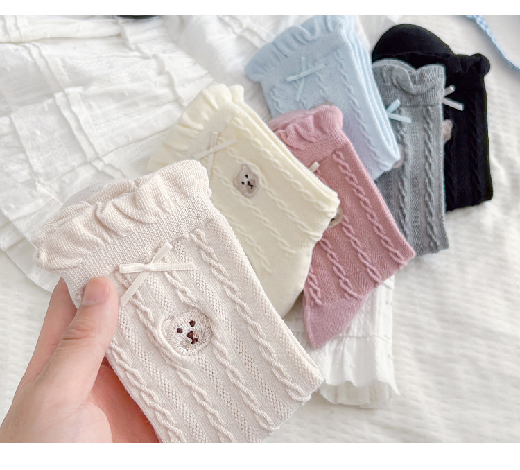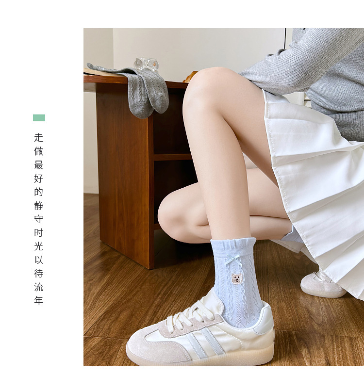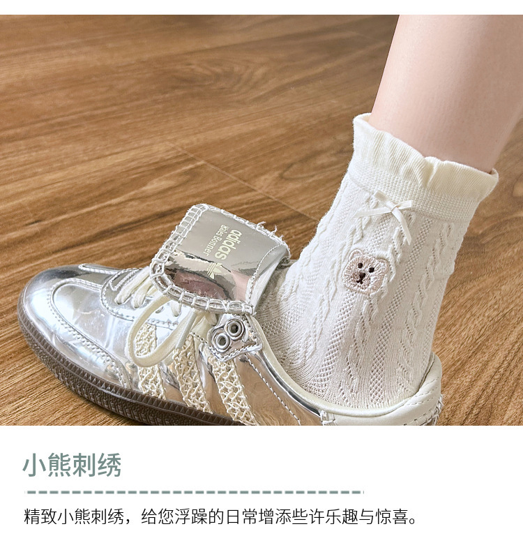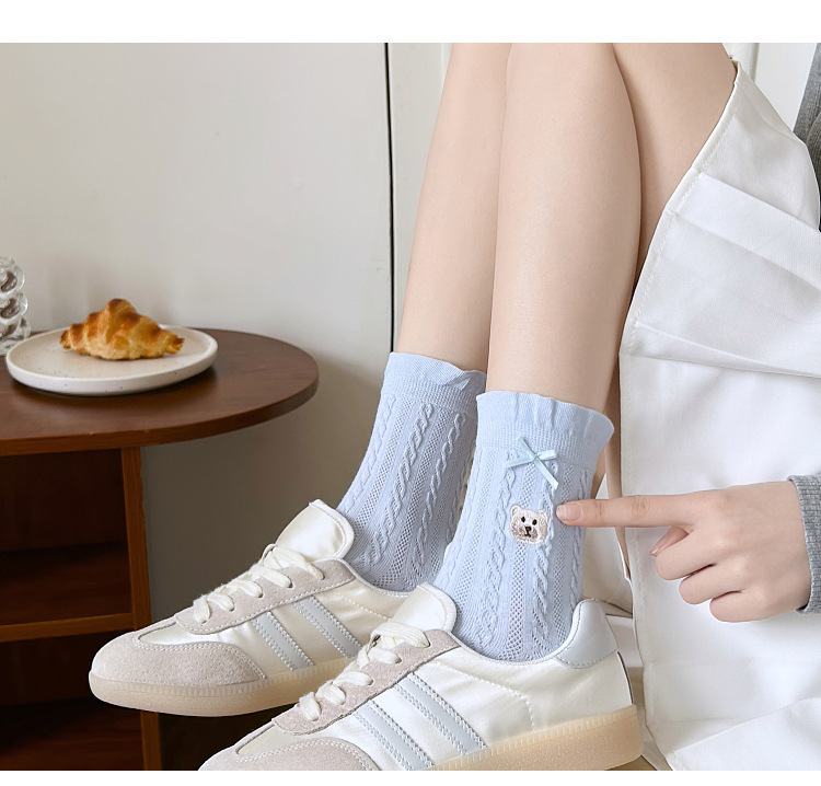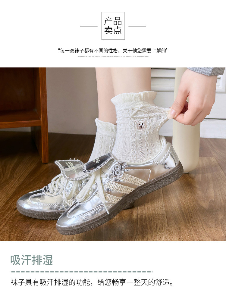 여름 여성용 면 양말, 얇은 종아리 중간 양말, 순면 땀 흡수 및 통기성 자수 강아지 레이스 양말, 다용도 면 양말스토어 가기