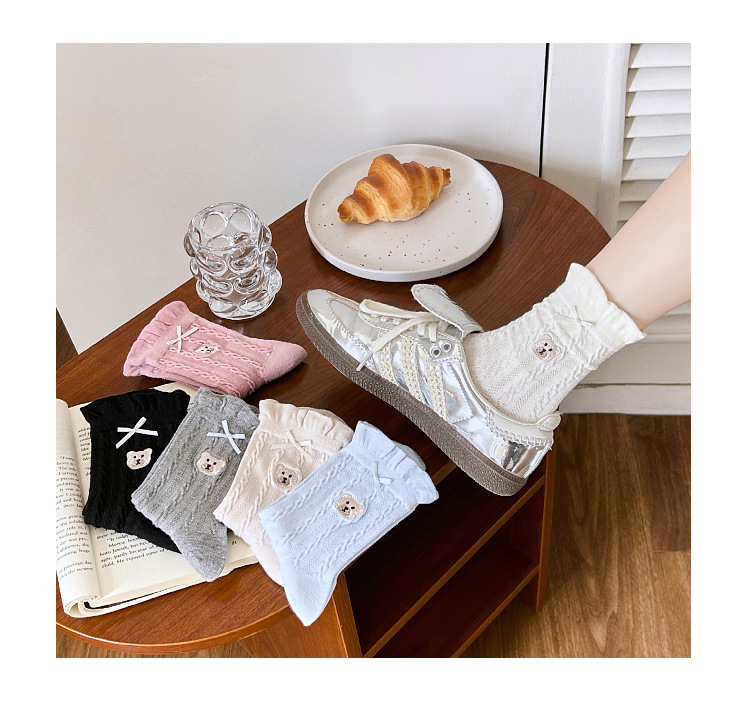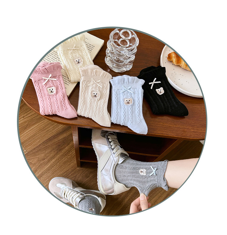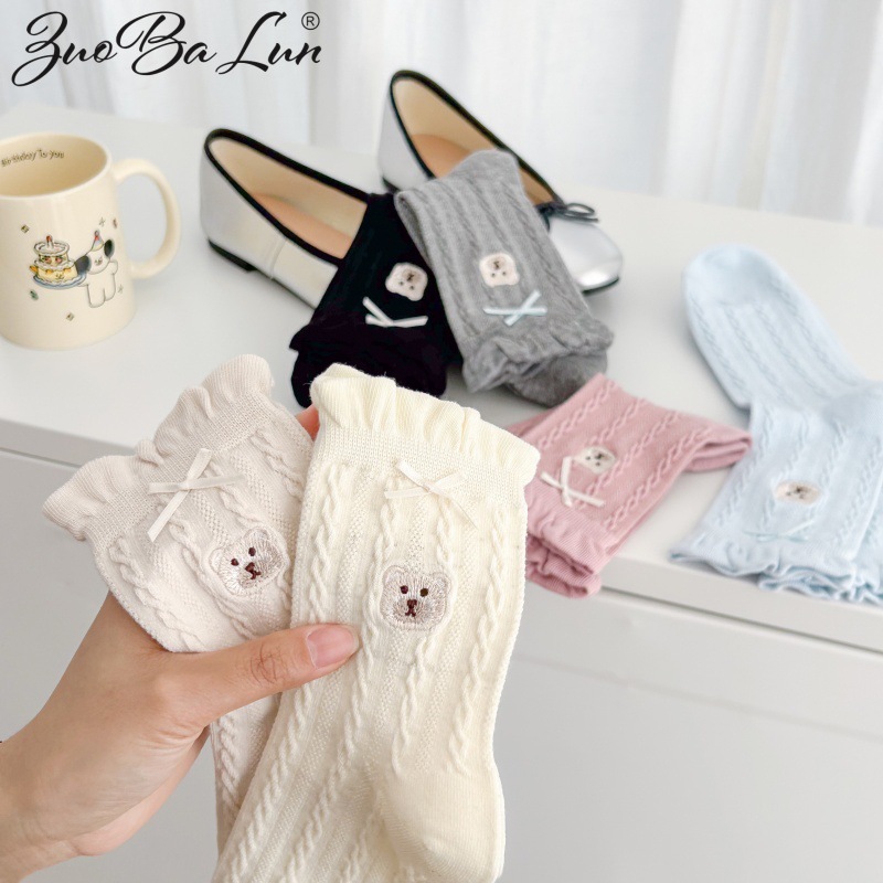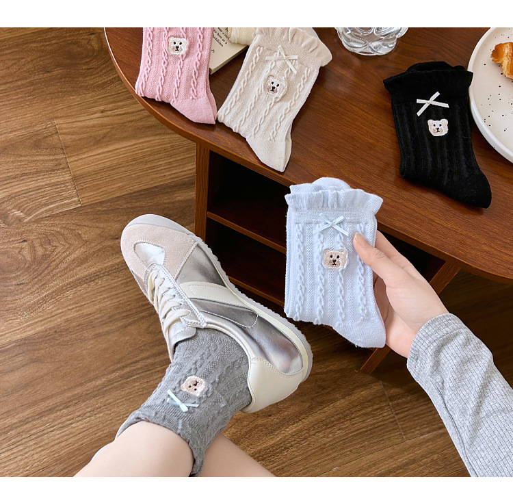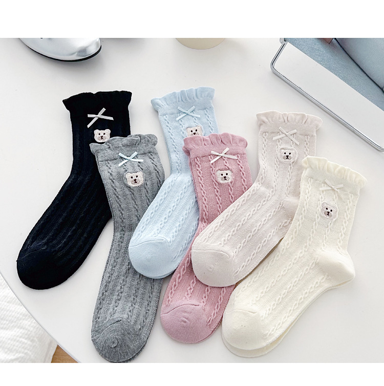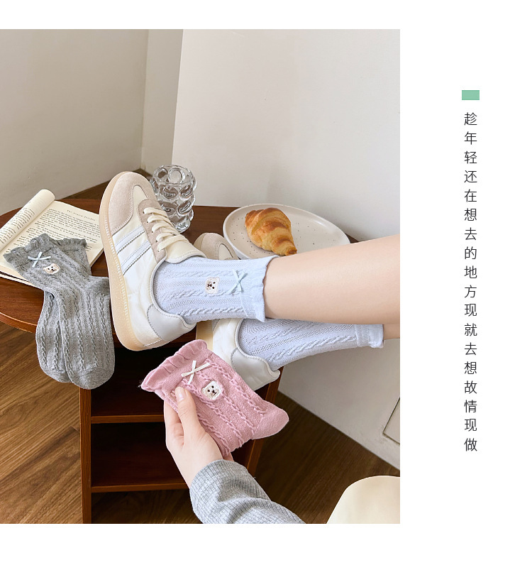 여름 여성용 면 양말, 얇은 종아리 중간 양말, 순면 땀 흡수 및 통기성 자수 강아지 레이스 양말, 다용도 면 양말스토어 가기
