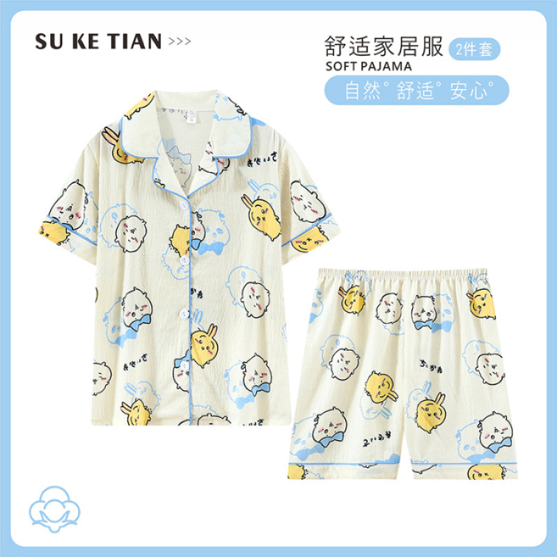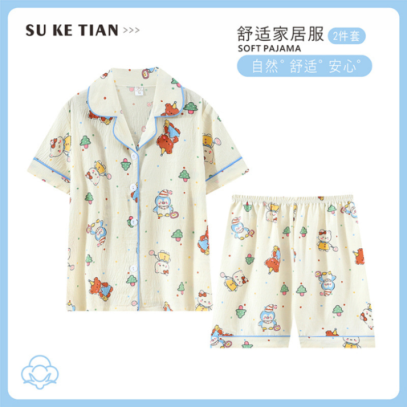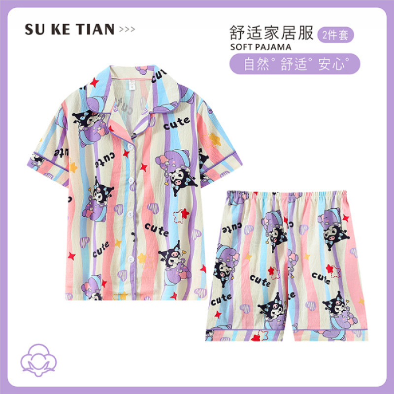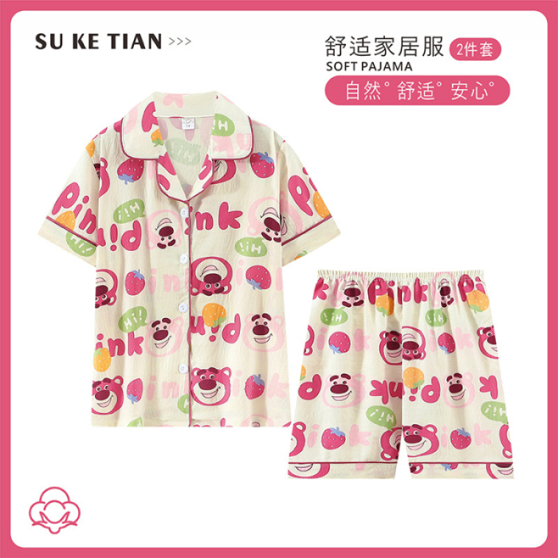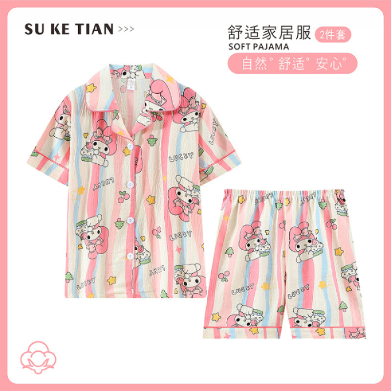 2025 여름 카디건 어린이 잠옷 도매 소녀 반팔 반바지 부모-자식 정장 홈웨어 잠옷스토어 가기